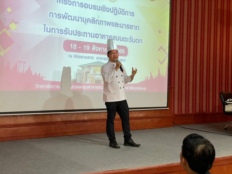 วิทยาลัยการท่องเที่ยวและอุตสาหกรรมบริการ จัดอบรมเชิงปฏิบัติการการพัฒนาบุคลิกภาพและมารยาทในการรับประทานอาหารแบบตะวันตก