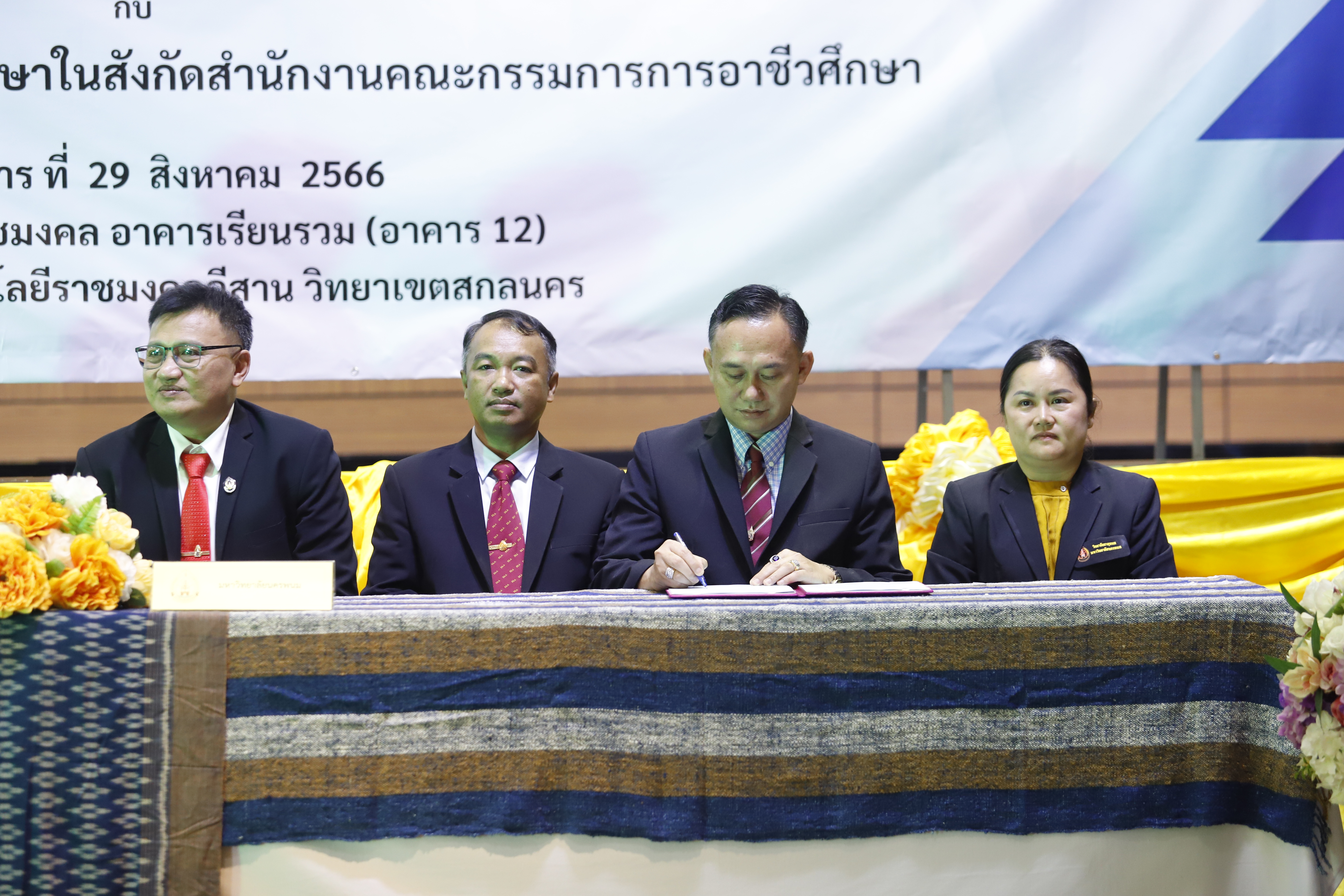 ภายในงานยังมีการลงนามความร่วมมือทางวิชาการระหว่างมหาวิทยาลัยเทคโนโลยีราชมงคลอีสาน วิทยาเขตสกลนคร กับ สถานศึกษาในสังกัดสำนักงานคณะกรรมการการอาชีวศึกษา อีก 16 สถาบัน มีการจัดแสดงผลงานวิจัยที่โดดเด่นของมหาวิทยาลัยเทคโนโลยีราชมงคลอีสาน วิทยาเขตสกลนคร และมีการเสวนา ภายใต้หัวข้อ “การดำเนินกิจกรรมความร่วมมือทางวิชาการ” เพื่อพูดคุยแลกเปลี่ยนการทำงานร่วมกันในปีที่ผ่านมา และร่วมกันวางแนวทางการทำงานขยายความร่วมมือในอนาคต