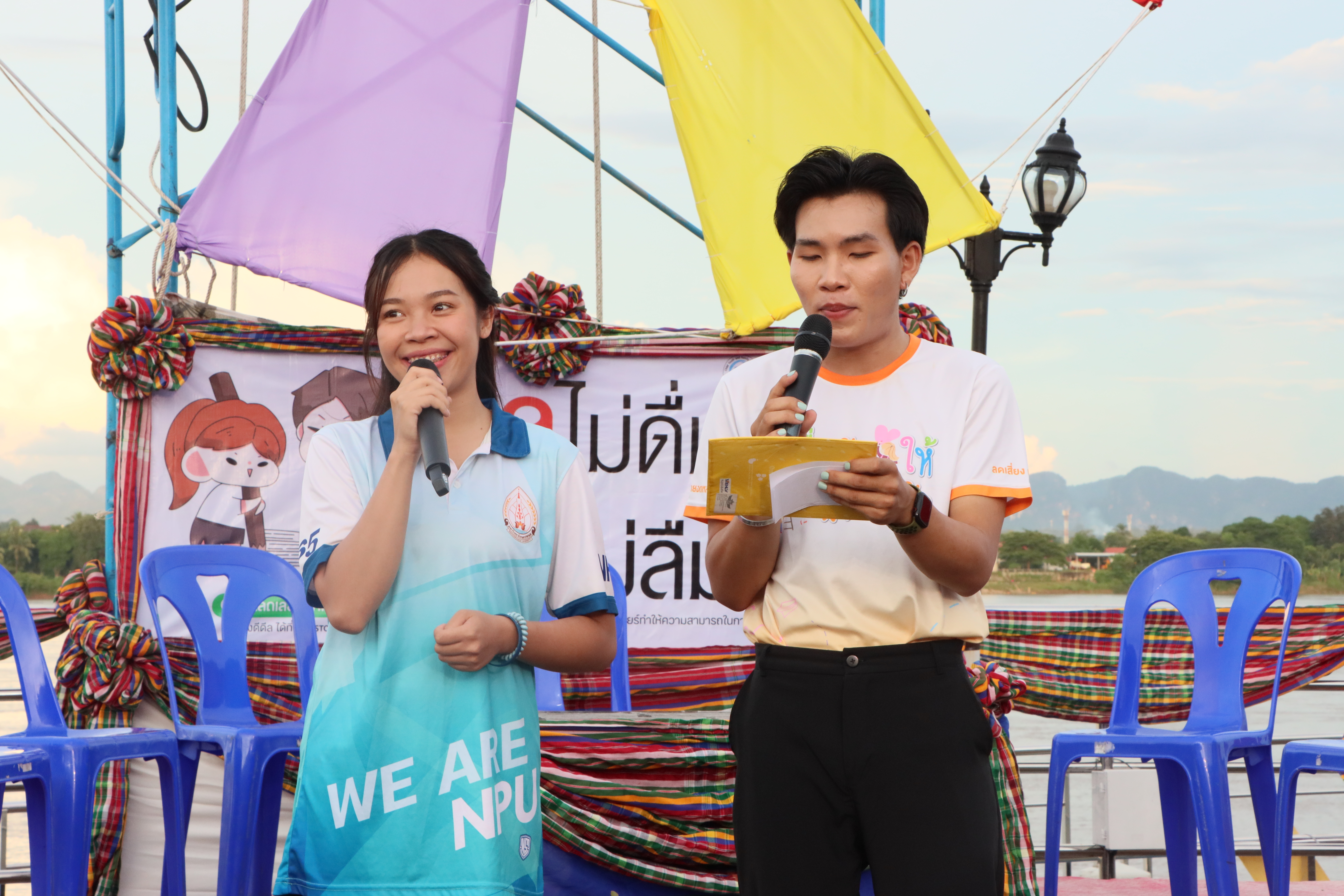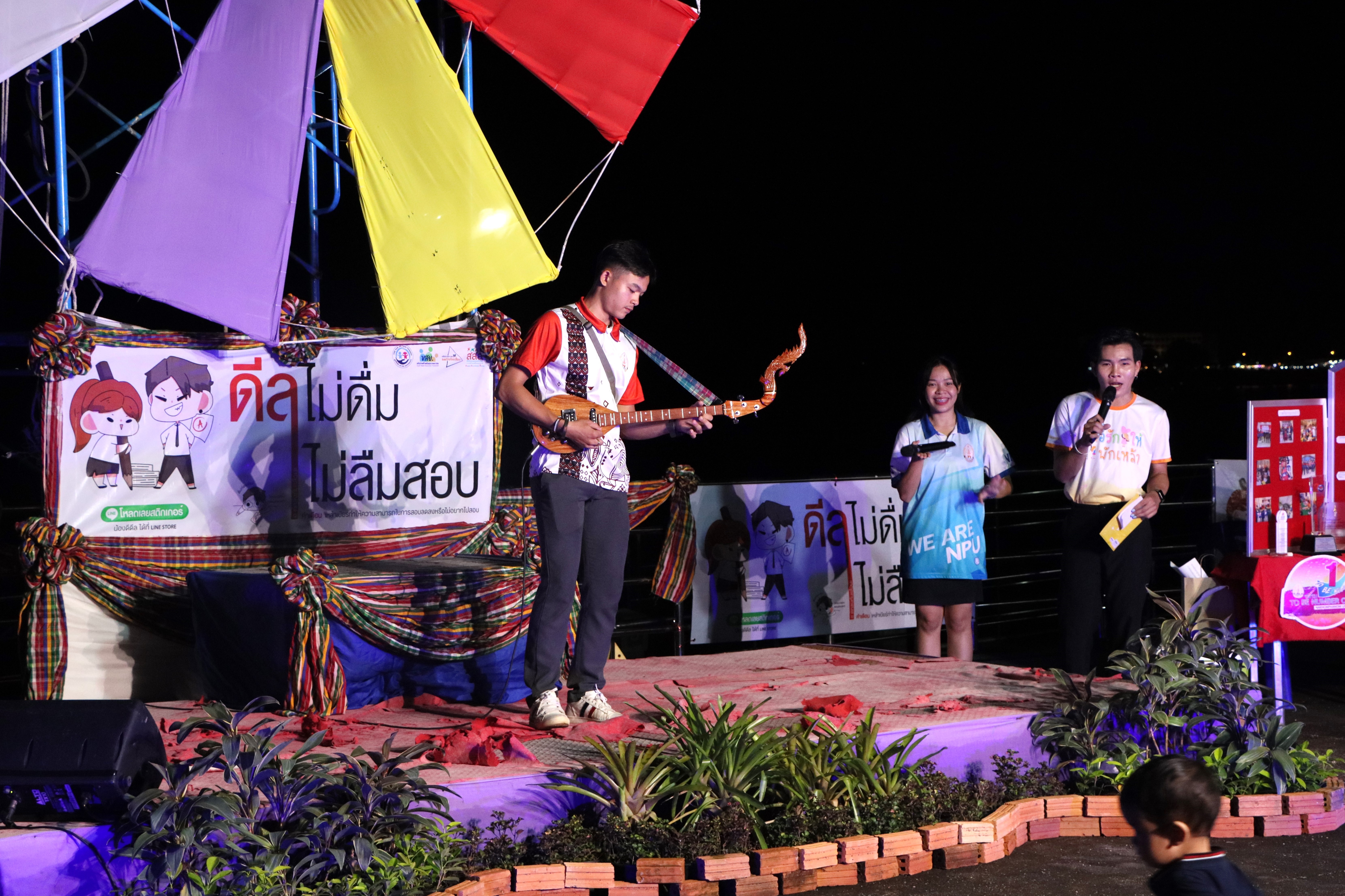 กิจกรรมภายในงานมีเวทีเสวนา เรื่อง แอลกอฮอล์ : ปัจจัยเสี่ยงต่อสุขภาพของวัยรุ่น ภายใต้โครงการรณรงค์งดดื่มเครื่องดื่มแอลกอฮอล์ช่วงสอบของนักศึกษา ตามแนวคิด “ดีลไม่ดื่ม ไม่ลืมสอบ” โดยมีแพทย์หญิงดุจอรุณ ลิ่มสวัสดิ์ จิตแพทย์เด็กและวัยรุ่น จากโรงพยาบาลนครพนม อาจารย์กาญจน ศาลปรีชา อาจารย์ที่ปรึกษาสโมสรนักศึกษาคณะศิลปศาสตร์และวิทยาศาสตร์ นายณัฐพงษ์ นะคะจัด ประธานสภานักศึกษามหาวิทยาลัยนครพนมและประธานสภาเด็กและเยาวชนจังหวัดนครพนม นายอนันต์ สมบัติหล้า นายกสโมสรนักศึกษาคณะศิลปศาสตร์และวิทยาศาสตร์ และนายอนันทชาติ มะกุล อดีตรองนายกสโมสรคณะวิศวกรรมศาสตร์ ร่วมเวทีเสวนา มีนายชัยวิชิต โกพลรัตน์ นักพัฒนาสังคม สำนักงานพัฒนาสังคมและความมั่นคงของมนุษย์จังหวัดนครพนม และอาจารย์จุฑาลักษณ์ แสนโท อาจารย์ประจำคณะศิลปศาสตร์และวิทยาศาสตร์ ดำเนินรายการ