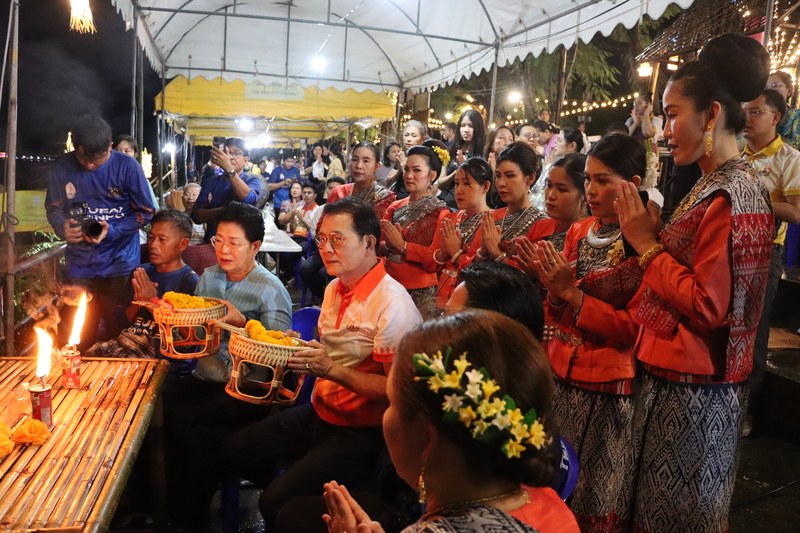 ภายในพิธีมี ศาสตราจารย์เกียรติคุณ ดร.ธวัชชัย ศุภดิษฐ์ อธิการบดีมหาวิทยาลัยนครพนม พร้อมคณะผู้บริหาร ร่วมประกอบพิธีบวงสรวงและจุดตะเกียงเรือไฟ เพื่อความเป็นสิริมงคล มี นายธงชัย ชำนาญไพร นายกสมาคมศิษย์เก่ามหาวิทยาลัยนครพนม ร่วมในพิธี ณ บริเวณซุ้มเรือไฟมหาวิทยาลัยนครพนม (หน้าโรงเรียนสุนทรวิจิตร) เขตเทศบาลเมืองนครพนม