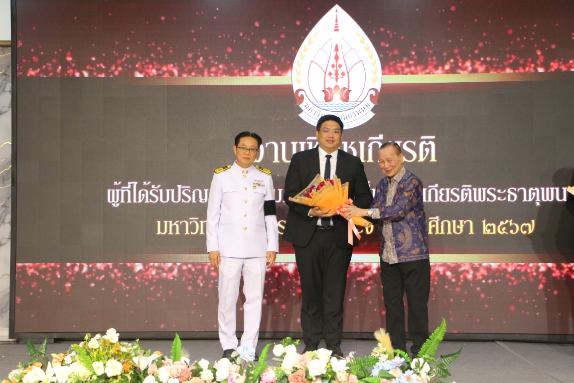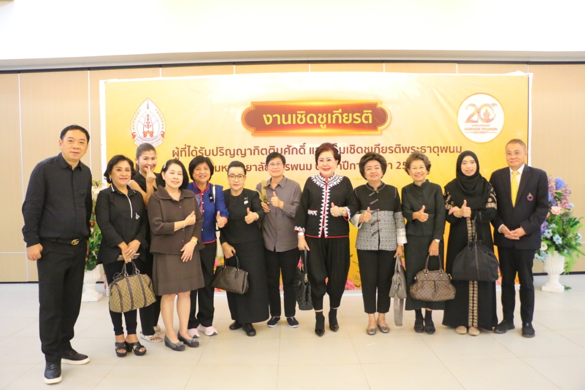 วันที่ 24 ธันวาคม 2568 เวลา 18.00 น. มหาวิทยาลัยนครพนม จัดงานเชิดชูเกียรติผู้ได้รับปริญญากิตติมศักดิ์และผู้ได้รับรางวัลเข็มเชิดชูเกียรติพระธาตุพนม ประจำปีการศึกษา 2567 โดยมี ศาสตราจารย์ ดร.นายแพทย์กระแส ชนะวงศ์ นายกสภามหาวิทยาลัยนครพนม เป็นประธานในพิธี พร้อมด้วย ศาสตราจารย์เกียรติคุณ ดร.ธวัชชัย ศุภดิษฐ์ อธิการบดีมหาวิทยาลัยนครพนม กรรมการสภามหาวิทยาลัยผู้ทรงคุณวุฒิ และคณะผู้บริหารมหาวิทยาลัยนครพนม ร่วมแสดงความยินดีอย่างอบอุ่น ณ ห้องจามจุรี ภัตตาคารแม่นำพร อำเภอเมือง จังหวัดนครพนม