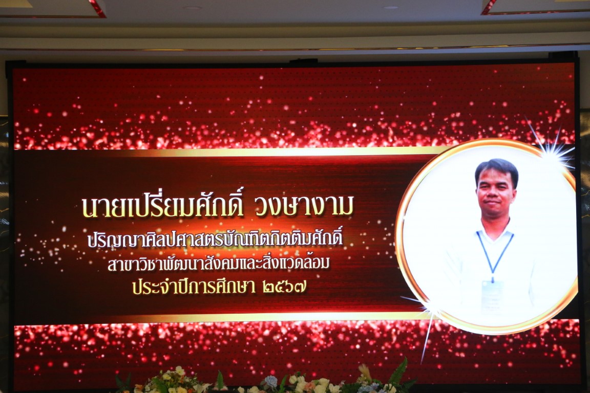 ได้รับปริญญา ศิลปศาสตรมหาบัณฑิตกิตติมศักดิ์ สาขาวิชาพัฒนาสังคมและสิ่งแวดล้อม