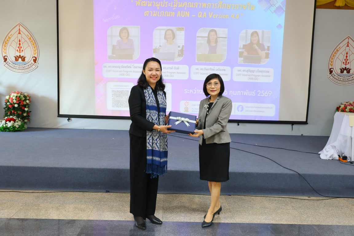 วันที่ 4 กุมภาพันธ์ 2569 เวลา 09.00 น. แผนกประกันคุณภาพการศึกษา กองนโยบายและแผน สำนักงานอธิการบดี มหาวิทยาลัยนครพนม จัดโครงการอบรมเชิงปฏิบัติการ “พัฒนาผู้ประเมินคุณภาพการศึกษาภายใน ตามเกณฑ์ AUN-QA Version 4.0” ปีการศึกษา 2568 ในการนี้ ศาสตราจารย์เกียรติคุณ ดร.ธวัชชัย ศุภดิษฐ์ อธิการบดีมหาวิทยาลัยนครพนม มอบหมายให้ ผู้ช่วยศาสตราจารย์ ดร.รุ้งลาวัลย์ เอี่ยมกุศลกิจ รองอธิการบดีฝ่ายกิจการพิเศษและประกันคุณภาพการศึกษา เป็นประธานกล่าวเปิดโครงการ โดยเน้นย้ำถึงความสำคัญของการพัฒนาผู้ประเมินคุณภาพการศึกษาภายในให้มีมาตรฐานเดียวกัน และสามารถนำเกณฑ์ AUN-QA Version 4.0 ไปประยุกต์ใช้ในการยกระดับคุณภาพหลักสูตรและการจัดการศึกษาอย่างเป็นระบบ