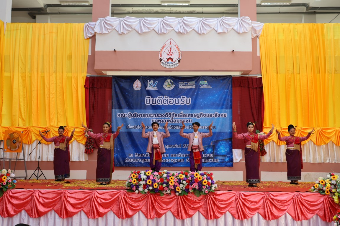 ม.นครพนม ร่วมต้อนรับคณะผู้บริหาร กระทรวงดิจิทัลเพื่อเศรษฐกิจและสังคม ลงพื้นที่ตรวจราชการ ณ ศูนย์ดิจิทัลชุมชนวิทยาลัยธาตุพนม