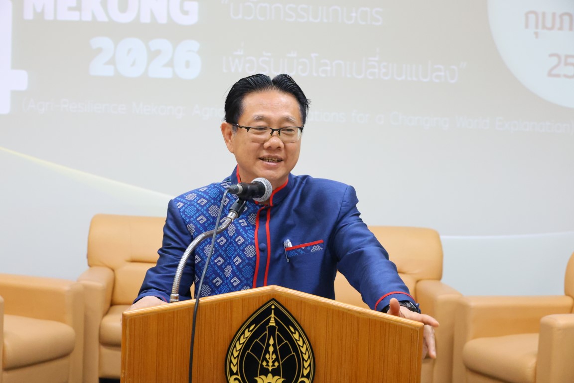 ศาสตราจารย์เกียรติคุณ ดร.ธวัชชัย ศุภดิษฐ์ กล่าวว่า พื้นที่ลุ่มน้ำโขงเป็นภูมิภาคที่มีความสำคัญอย่างยิ่งต่อการพัฒนาด้านการเกษตรของประเทศ ทั้งในมิติความมั่นคงทางอาหาร การสร้างรายได้แก่ชุมชน และการเชื่อมโยงความร่วมมือในระดับอนุภูมิภาค อย่างไรก็ตาม โลกปัจจุบันกำลังเผชิญความท้าทายจากการเปลี่ยนแปลงสภาพภูมิอากาศ ความผันผวนทางเศรษฐกิจ เทคโนโลยีที่เปลี่ยนแปลงรวดเร็ว และข้อจำกัดด้านทรัพยากรธรรมชาติ ซึ่งล้วนส่งผลกระทบโดยตรงต่อภาคการเกษตร