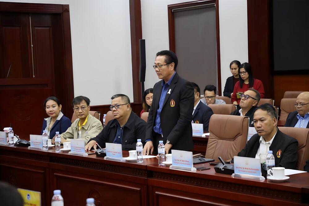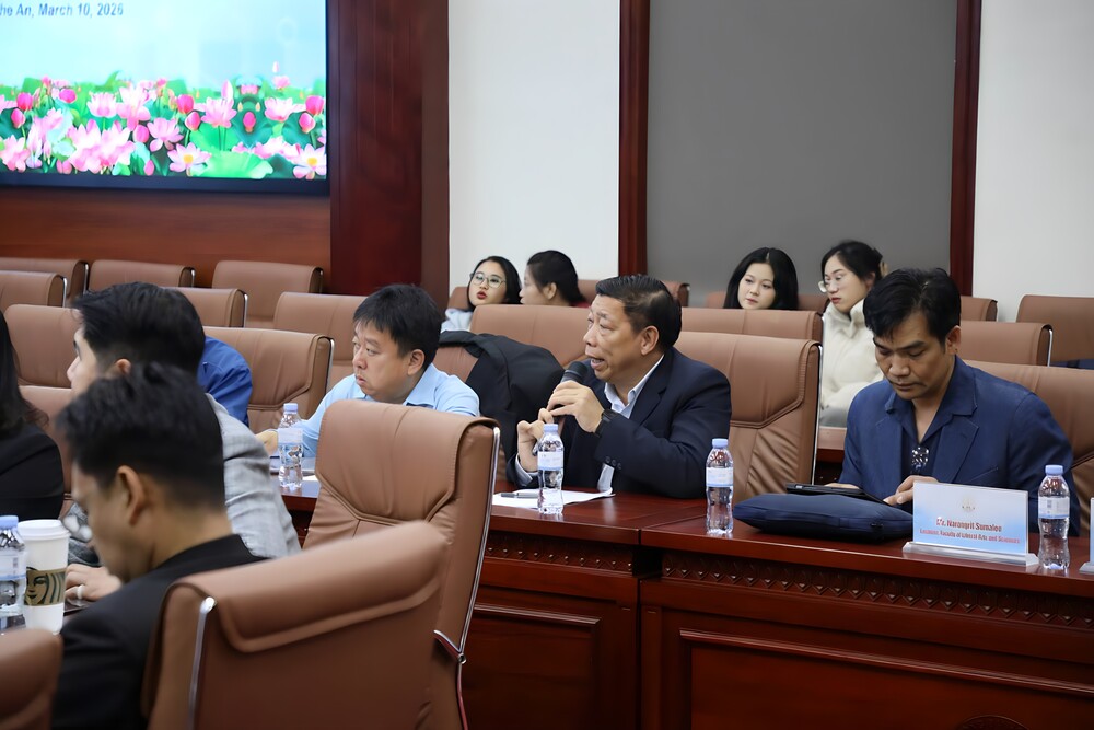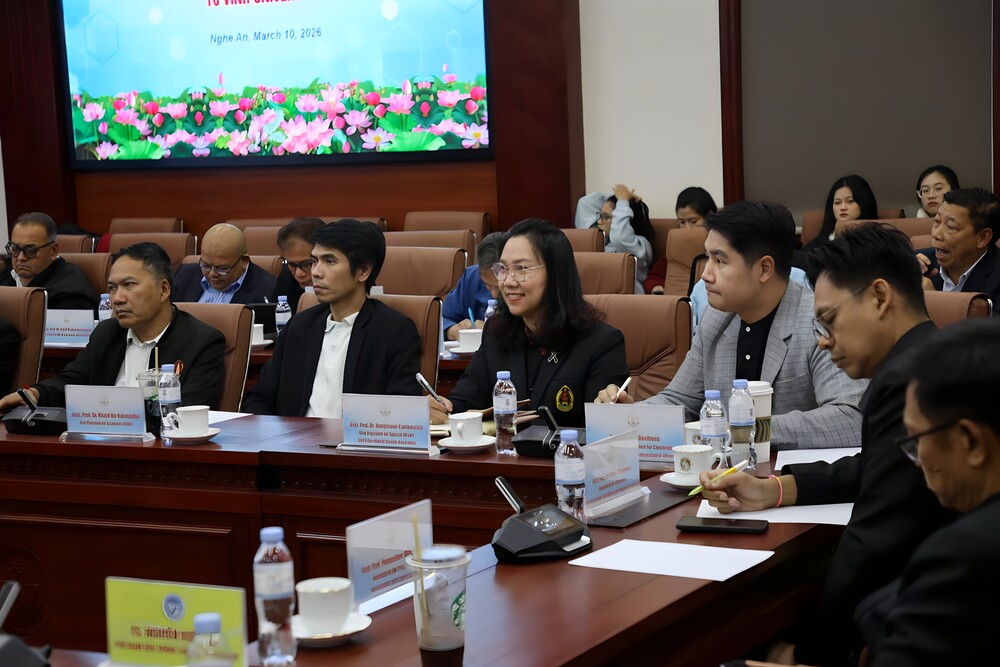 วันที่ 10 มีนาคม 2569 เวลา 09.00 น. ณ มหาวิทยาลัยวิงห์ สาธารณรัฐสังคมนิยมเวียดนาม ศาสตราจารย์เกียรติคุณ ดร.ธวัชชัย ศุภดิษฐ์ อธิการบดีมหาวิทยาลัยนครพนม นนำคณะผู้บริหารมหาวิทยาลัยนครพนม พร้อมด้วยคณาจารย์จากศูนย์ศึกษาอนุภูมิภาคลุ่มน้ำโขง ม.นครพนม เข้าร่วมประชุมหารือความร่วมมือทางวิชาการกับกับผู้บริหารและคณาจารย์ของ Vinh University เพื่อพัฒนาเครือข่ายความร่วมมือด้านการศึกษา วิจัย และการพัฒนาศักยภาพบุคลากรในระดับนานาชาติ ภายใต้โครงการพัฒนาเครือข่ายความร่วมมือเชิงบูรณาการระหว่างมหาวิทยาลัยในอนุภูมิภาคลุ่มน้ำโขง โดยมี Assoc. Prof. Dr. Tran Ba Tien รองอธิการบดีมหาวิทยาลัยวิงห์ พร้อมคณะผู้บริหาร ให้การต้อนรับอย่างอบอุ่น