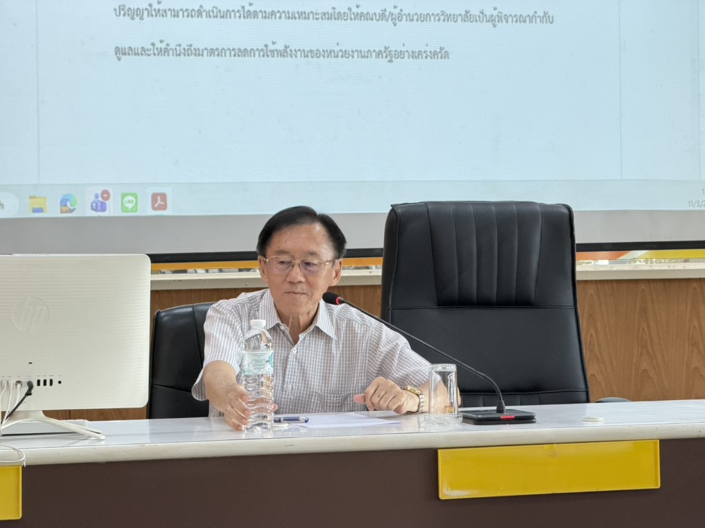 วันที่ 11 มีนาคม 2569 มหาวิทยาลัยนครพนม จัดประชุมหารือเรื่องแนวทางการจัดการเรียนการสอนและการสอบของนักศึกษา รวมถึงการปฏิบัติงานของบุคลากรมหาวิทยาลัยนครพนม โดยมี ศาสตราจารย์ ดร.สุรสิทธิ์ วชิรขจร รองอธิการบดีฝ่ายบริหารทรัพยากรมนุษย์ เป็นประธานในการประชุม พร้อมด้วยคณะกรรมการและผู้เกี่ยวข้องเข้าร่วมประชุม ณ ห้องพนมเมธี ชั้น 5 อาคารสำนักงานอธิการบดี1 มหาวิทยาลัยนครพนม เขตพื้นที่ศรีโคตรบูรณ์