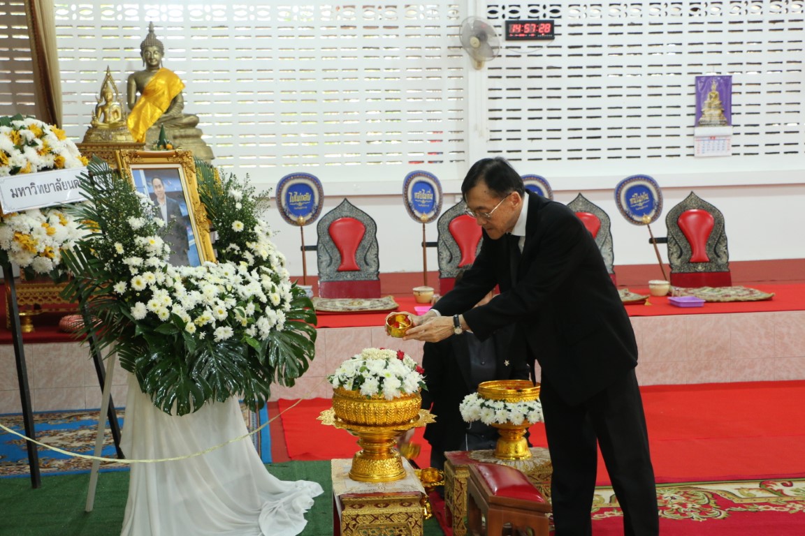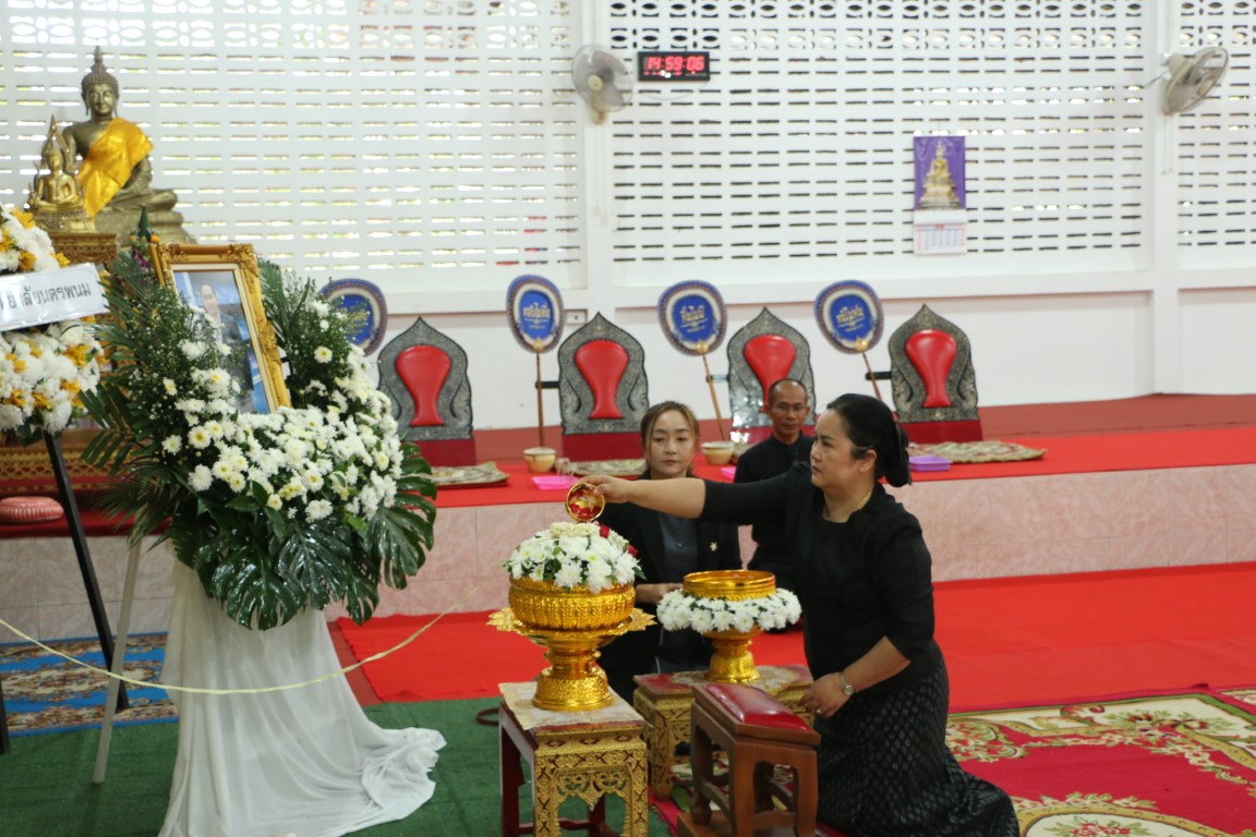 อธิการบดี ม.นครพนมร่วมพิธีพระราชทานน้ำหลวงอาบศพ พิธีสวดอภิธรรม และพิธีพระราชทานเพลิงศพ ผศ.ดร.สำราญ วิเศษ