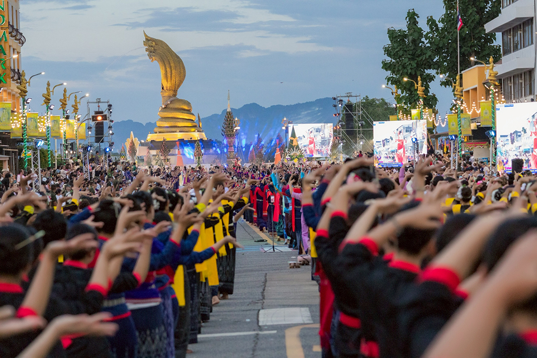 เวลา 18.30 น. รับชมการแสดงรำบูชาพญาศรีสัตตนาคราช โดยคณะนางรำจำนวนกว่า 3,000 คน จาก