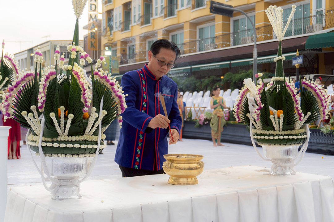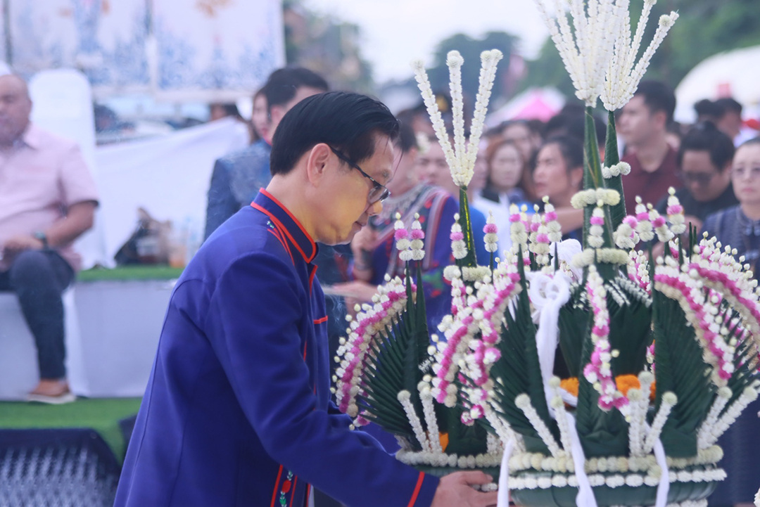 เวลา 18.00 น. ประธานในพิธีจุดธูปเทียน และกล่าวคำบูชาองค์พญาศรีสัตตนาคราช โดยมีแขกผู้มีเกียรติ และหัวหน้าส่วนราชการร่วมวางเครื่องบูชา ณ แท่นบูชาที่จัดเตรียมไว้ ก่อนเข้าสู่บริเวณพิธีหลัก
