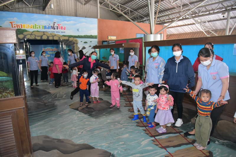 วันที่ 14 มีนาคม 2566 ณ พิพิธภัณฑ์สัตว์น้ำจืดโลกของปลาแม่น้ำโขง ศูนย์วิทยาศาสตร์เพื่อการศึกษานครพนม และ อนุสรณ์สถานประธานโฮจิมินห์ จังหวัดนครพนม ผู้ช่วยศาสตราจารย์ ดร.สมสมร เรืองวรบูรณ์ รักษาราชการแทนคณบดีวิทยาลัยพยาบาลบรมราชชนนีนครพนม มหาวิทยาลัยนครพนม มอบหมายให้ ผู้ช่วยศาสตราจารย์ดารุนนีย์ สวัสดิโชตติ์ ผู้ช่วยคณบดีฝ่ายกิจการพิเศษ นำศูนย์พัฒนาเด็กเล็กก่อนวัยเรียน วิทยาลัยพยาบาลบรมราชชนนีนครพนม จัดโครงการหนูน้อยสำรวจโลก ประจำปี 2566 ภายใต้โครงการเสริมสร้างพัฒนาการเด็กเลยก่อนวัยเรียน ให้แก่เด็กก่อนวันเรียนและผู้ปกครองที่พาบุตรหลานมาใช้บริการ ณ ศูนย์พัฒนาเด็กเล็กก่อนวัยเรียน วิทยาลัยพยาบาลบรมราชชนนีนครพนม
