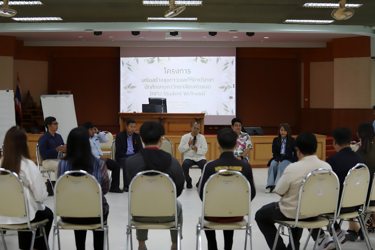 ม.นครพนม จัดโครงการเสริมสร้างสุขภาวะและให้คำปรึกษานักศึกษา เน้นดูแลสุขภาพจิตและพร้อมรับมือสถานการณ์ฉุกเฉิน (Nakhon Phanom University organizes a project to enhance student well-being and provide counselling, focusing on mental health care and preparedness for emergency situations.)