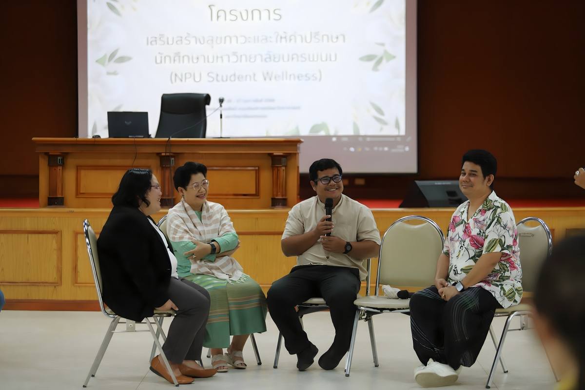 On February 26, 2025, the Student Development Division of the Rector's Office at Nakhon Phanom University organized the Nakhon Phanom University Student Wellness Program (NPU Student Wellness). Assistant Professor Dr. Kachit Na Kalasin, Vise President for Academic Affairs, presided over the opening ceremony of the project. Faculty and staff involved in student counselling also participated in the project at the Phanom Sin Room, Faculty of Liberal Arts and Sciences, Nakhon Phanom University (Mrukkanakhon Campus).