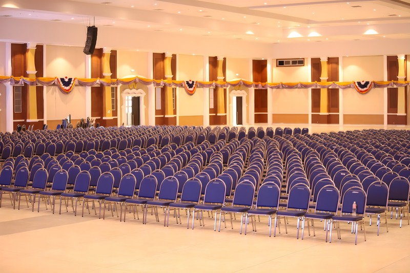 ภาพมุมสูงเผยให้เห็นหอประชุมขนาดใหญ่ตั้งตระหง่านในเขตพื้นที่บริเวณบ้านเนินสะอาด ต.นาราชควาย อ.เมืองนครพนม หรือมีชื่อเรียกว่า หอประชุมอนุภูมิภาคลุ่มน้ำโขง ของมหาวิทยาลัยนครพนม ที่ใช้งบประมาณก่อสร้างรวม 350 ล้านบาท ถูกเนรมิตตกแต่งอย่างสวยงาม เพื่อเตรียมเป็นสถานที่ในพิธีพระราชทานปริญญาบัตร ซึ่งจะมีขึ้นในวันที่ 24 มีนาคม นี้