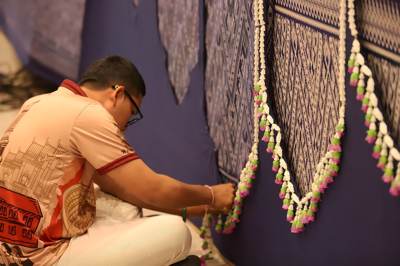 “หอประชุมอนุภูมิภาคลุ่มน้ำโขง” ปีนี้ถูกเนรมิตตกแต่งอย่างสวยงาม เพื่อใช้เป็นสถานที่พระราชทานปริญญาบัตรของมหาวิทยาลัยนครพนม ประจำปีการศึกษา 2566 ในวันที่ 24 มีนาคม 2568 และถือเป็นปีแรกของการจัดงานใหญ่ที่หอประชุมแห่งนี้ เราได้พูดคุยกับ “นิรมิต บุรีรัมย์” ทีมจัดตกแต่งดอกไม้ในงานพิธีพระราชทานปริญญาบัตรถึงแนวคิดการตกแต่งเวที ซึ่งได้ข้อมูลว่า ปีนี้ มาในคอนเซ็ปต์ “นครพนม แสง ศิลป์ ศรัทธา” ได้รับแรงบันดาลใจจากจังหวัดนครพนม ดินแดนแห่งศิลปะ วัฒนธรรม และความศรัทธา ถ่ายทอดผ่านองค์ประกอบสำคัญ 4 ส่วน ได้แก่