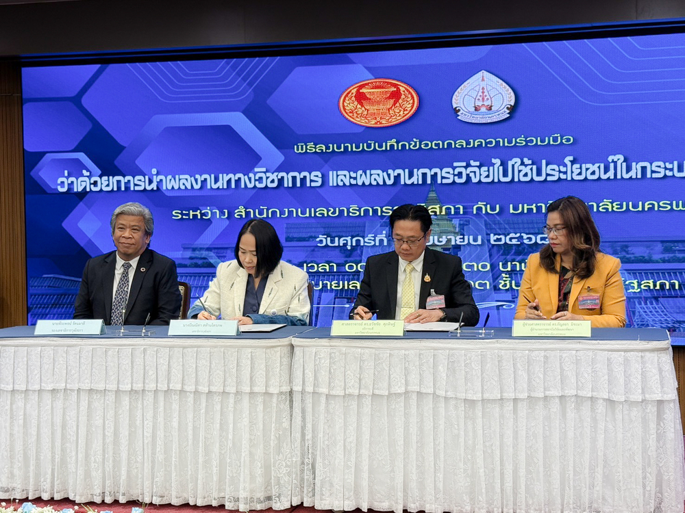 มหาวิทยาลัยนครพนม ลงนามบันทึกข้อตกลงความร่วมมือกับสำนักงานเลขาธิการวุฒิสภา เพื่อร่วมกันขับเคลื่อนการนำผลงานทางวิชาการและผลงานวิจัยไปใช้ประโยชน์ในกระบวนการนิติบัญญัติ