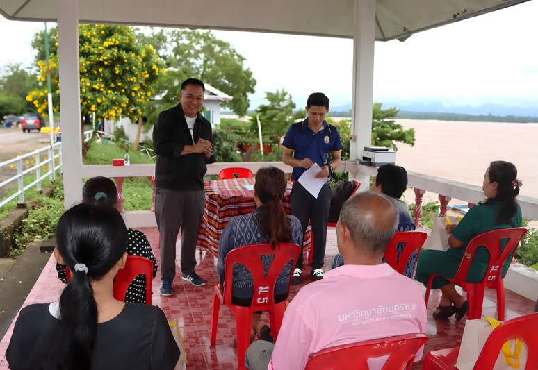 August 26, 2025, 9:30 AM Assistant Professor Dr. Nonthachat Weeranuwattana, Dean of the College of Tourism and Service Industry, Nakhon Phanom University, along with Dr. Apitai Kaewjaras, Deputy Dean for Academic and Research Affairs, as a member of the research team for the project "Development of a Non-Degree Creative Economy Entrepreneurship Curriculum Based on the Mekong River Basin Culture in Nakhon Phanom," conducted field visits to organize exchange forums and gather feedback (focus groups) with stakeholders in Mueang Nakhon Phanom District and Chaiyaburi Subdistrict, Tha Uthen District. This was done to jointly confirm and verify in-depth information on tourism along the Mekong River.