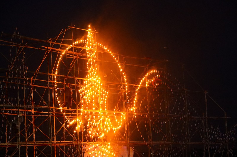ยามค่ำคืน กระป๋องแต่ละใบที่บรรจุน้ำมันจะถูกจุดขึ้นพร้อมกัน ดวงไฟนับหมื่นบนเรือไฟสะท้อนลงสายน้ำโขง กลายเป็นภาพที่ทั้งงดงามและศักดิ์สิทธิ์ ราวกับดวงดาวทั้งฟ้าได้ไหลไปตามสายน้ำ