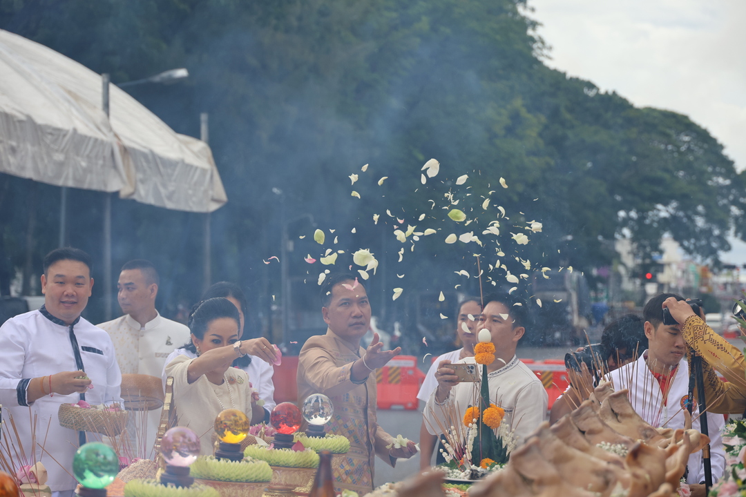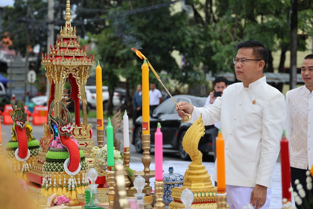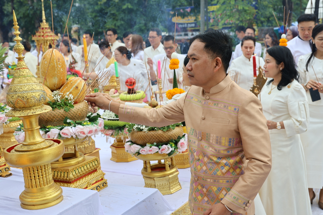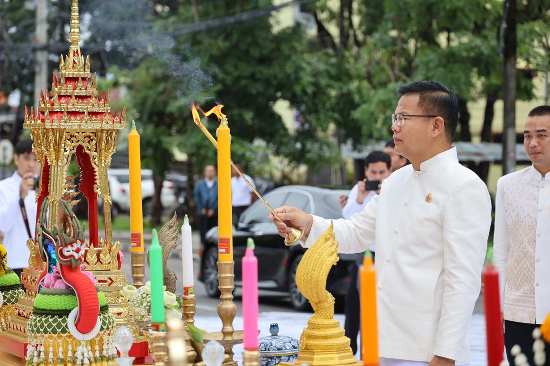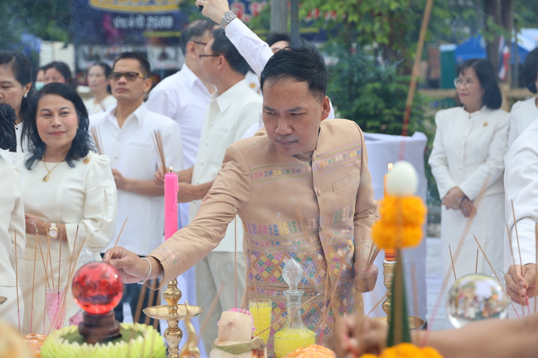 มหาวิทยาลัยนครพนมร่วมพิธีบวงสรวงสักการะสิ่งศักดิ์สิทธิ์เพื่อความเป็นสิริมงคลในงานประเพณีไหลเรือไฟและงานกาชาดจังหวัดนครพนม ประจำปี 2568