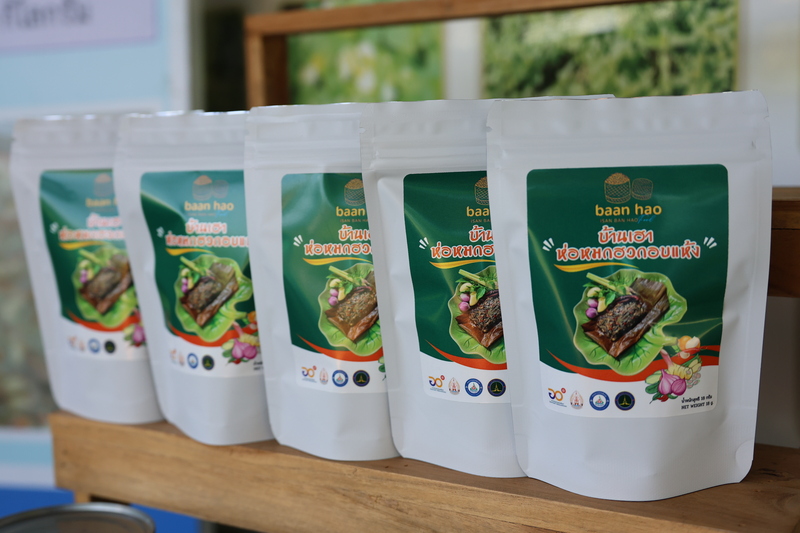 ทั้งนี้ มหาวิทยาลัยนครพนม ได้ช่วยถ่ายทอดเทคโนโลยีที่เหมาะสมกับกลุ่มผู้ผลิตในท้องถิ่น เช่น การผลิต ห่อหมกฮวกอบแห้ง ซึ่งใช้เทคโนโลยีไม่ซับซ้อน ต้นทุนต่ำ แต่สามารถสร้างมูลค่าเพิ่มได้สูง โดยปัจจุบันผลิตภัณฑ์ของกลุ่มได้รับการรับรองมาตรฐาน GMP และ อย. แล้ว สามารถเลือกซื้อสินค้าจาก Shoppe/Lazada/TikTok ภายใต้แบรนด์ Baan Hao (บ้านเฮา) และอยู่ระหว่างการขยายตลาดสู่ต่างประเทศ โดยเฉพาะความร่วมมือกับ มินิบิ๊กซี สปป.ลาว เพื่อรองรับการจำหน่ายสินค้าสู่ตลาดอาเซียน