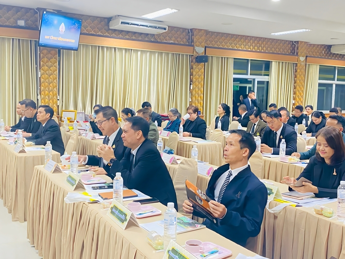วันที่ 20 พฤศจิกายน 2568 ผู้ช่วยศาสตราจารย์ ดร.ขจิต ณ กาฬสินธุ์ พร้อมด้วย นางทิพวรรณ ไชยหาเทพ รักษาการผู้อำนวยการกองบริหารวิชาการ และบุคลากรงานแนะแนวและรับเข้านักศึกษา กองบริหารวิชาการ มหาวิทยาลัยนครพนม เข้าร่วมประชาสัมพันธ์หลักสูตรการเรียนการสอนและแนะนำกระบวนการรับสมัครนักศึกษาใหม่ ในการประชุมผู้บริหารการศึกษา ผู้บริหารสถานศึกษา ผู้อำนวยการกลุ่ม/หน่วย ศึกษานิเทศก์ และบุคลากร ในสังกัดสำนักงานเขตพื้นที่การศึกษามัธยมศึกษานครพนม (สพม.) ครั้งที่ 5/2568 ณ ห้องประชุมเปือยงาม สำนักงานเขตพื้นที่การศึกษามัธยมศึกษานครพนม