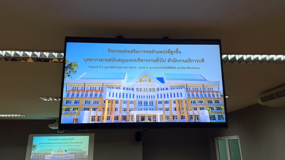 วันที่ 9 กุมภาพันธ์ 2569 กองบริหารงานทั่วไป สำนักงานอธิการบดี มหาวิทยาลัยนครพนม จัดกิจกรรมส่งเสริมการขอตำแหน่งที่สูงขึ้นของบุคลากรสายสนับสนุนกองบริหารงานทั่วไป เพื่อเสริมสร้างความรู้ ความเข้าใจในหลักเกณฑ์และกระบวนการขอตำแหน่งที่สูงขึ้นตามมาตรฐานกำหนดตำแหน่งของ ก.พ.อ. ตลอดจนพัฒนาศักยภาพบุคลากรให้สามารถจัดทำผลงานและเอกสารประกอบการประเมินได้อย่างถูกต้อง เป็นระบบ และมีคุณภาพ ณ อาคารเทคโนโลยีดิจิทัล มหาวิทยาลัยนครพนม (เขตพื้นที่ดิจิทัล)