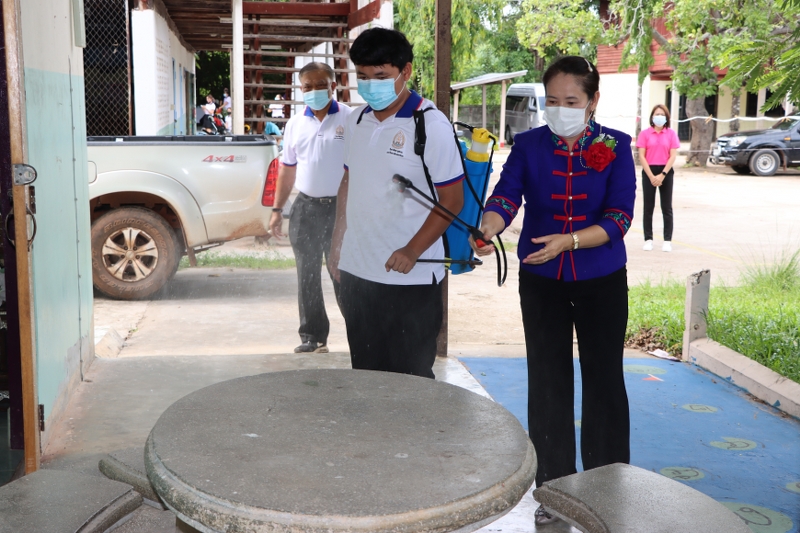 ม.นครพนม ลงพื้นที่มอบเจลแอลกอฮอล์ หน้ากากอนามัย และอุปกรณ์ทำความสะอาดให้กับโรงเรียนในตำบลเรณูและตำบลโคกหินแฮ่ ตามมาตรการป้องกันโควิด-19 ก่อนเปิดภาคเรียน