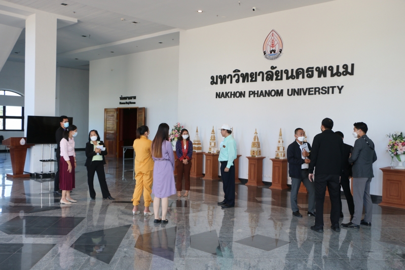 วันที่ 10 พฤศจิกายน 2564 เวลา 10.30 น. ดร.พรหมสวัสดิ์ ทิพย์คงคา รักษาราชการแทนอธิการบดีมหาวิทยาลัยนครพนม พร้อมด้วยอาจารย์ทัศนีย์ พลแก้ว ผู้ช่วยอธิการบดีฝ่ายส่งเสริมวิชาการและบริหารจัดการ เจ้าหน้าที่งานผังแม่บทและออกแบบก่อสร้าง และเจ้าหน้าที่งานพัสดุ กองนโยบายและแผน สำนักงานอธิการบดี ลงพื้นที่วิทยาลัยการท่องเที่ยวและอุตสาหกรรมบริการ เพื่อสำรวจอาคารศรีโคตรบูรณ์เตรียมสถานที่จัดงานพิธีพระราชทานปริญญาบัตร มหาวิทยาลัยนครพนม ประจำปีการศึกษา 2563 ซึ่งมีกำหนดจัดขึ้นในวันที่ 15 ธันวาคม 2564 โดยมี อาจารย์ ดร. พรหมภัสสร ชุณหบุญญทิพย์ คณบดีวิทยาลัยการท่องเที่ยวและอุตสาหกรรมบริการ อาจารย์ ดร.กันตภพ บัวทอง รองคณบดีฝ่ายบริหาร และเจ้าหน้าที่อาคารสถานที่ของวิทยาลัยการท่องเที่ยวและอุตสาหกรรมบริการ ให้การต้อนรับ