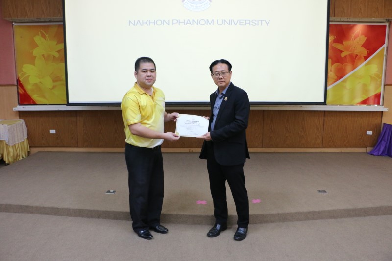 ซึ่งก่อนเริ่มประชุม ศาสตราจารย์ ดร.ธวัชชัย ศุภดิษฐ์ รักษาราชการแทนอธิการบดีมหาวิทยาลัยนครพนม ได้มอบเกียรติบัตรเชิดชูเกียรติให้แก่ คณาจารย์ บุคลากร นักศึกษา นักเรียน ที่สร้างชื่อเสียงให้แก่มหาวิทยาลัยนครพนม จนได้รับรางวัลในระดับต่างๆ ดังนี้