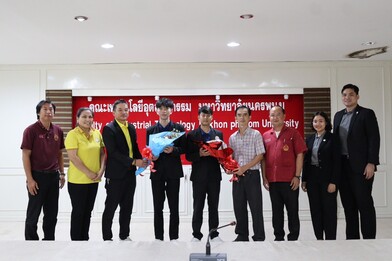 คณะเทคโนโลยีอุตสาหกรรม มอบช่อดอกไม้ร่วมแสดงความยินดีและให้โอวาทนักศึกษาศิษย์เก่าที่ผ่านการพิจารณาคัดเลือกจากบริษัทฯ ไปฝึกงาน ณ ประเทศญี่ปุ่น