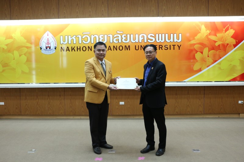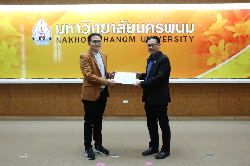 1.1.3 สภาอุตสาหกรรมจังหวัดนครพนม มอบเงินสนับสนุนทุนในการสร้างเรือไฟมหาวิทยาลัยนครพนม จำนวนเงิน 100,000 บาท (หนึ่งแสนบาทถ้วน)