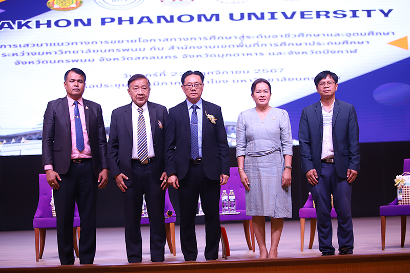 วันที่ 22 พฤศจิกายน 2567 เวลา 10.00 น. มหาวิทยาลัยนครพนมจัดโครงการเสวนาแนวทางการขยายโอกาสทางการศึกษาสู่ระดับอาชีวศึกษาและอุดมศึกษา ระหว่างมหาวิทยาลัยนครพนม กับสำนักงานเขตพื้นที่การศึกษาประถมศึกษาจังหวัดนครพนม จังหวัดสกลนคร จังหวัดมุกดาหารและจังหวัดบึงกาฬ โดยมี ศาสตราจารย์ ดร.ธวัชชัย ศุภดิษฐ์ รักษาราชการแทนอธิการบดี มหาวิทยาลัยนครพนม เป็นผู้กล่าวต้อนรับและเปิดโครงการในครั้งนี้ พร้อมทั้งยังได้ร่วมเสวนาวิชาการ ในหัวข้อ "แนวทางการขยายโอกาสทางการศึกษาสู่ระดับอาชีวศึกษาและระดับอุดมศึกษา" ร่วมกับ