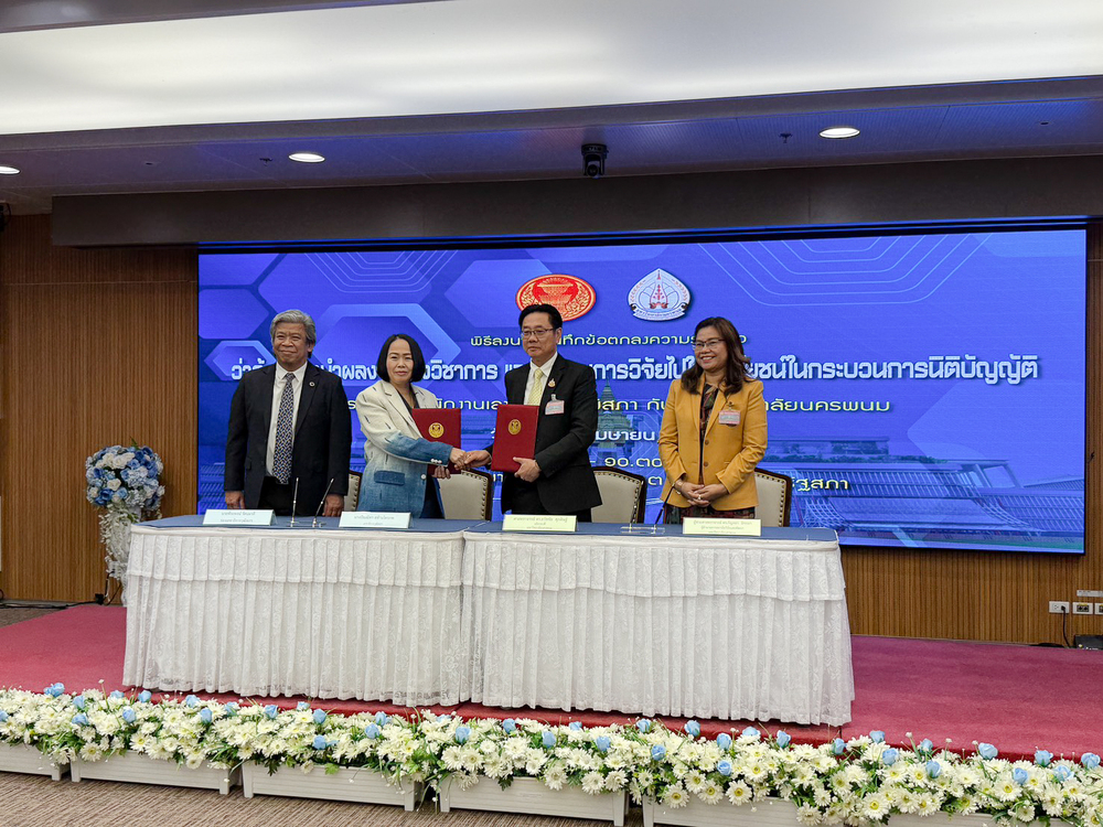 มหาวิทยาลัยนครพนม ลงนามบันทึกข้อตกลงความร่วมมือกับสำนักงานเลขาธิการวุฒิสภา เพื่อร่วมกันขับเคลื่อนการนำผลงานทางวิชาการและผลงานวิจัยไปใช้ประโยชน์ในกระบวนการนิติบัญญัติ