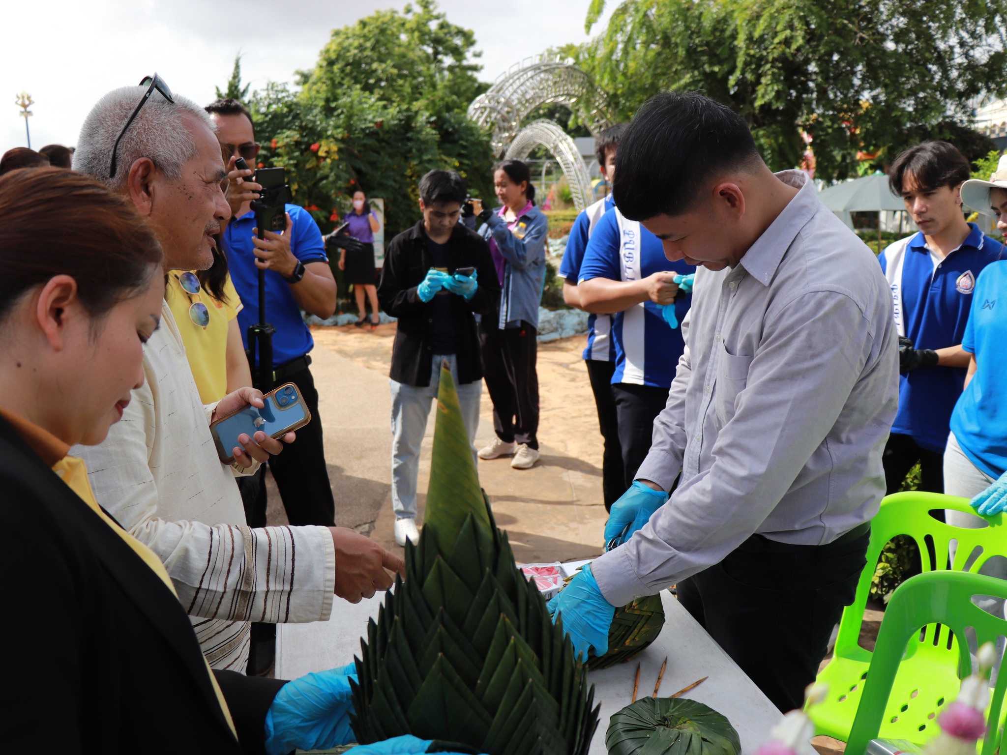 วันจันทร์ที่ 14 กรกฎาคม 2568 ผู้ช่วยศาสตราจารย์ ดร. ปุณณฑรีย์ เจียวิริยะบุญญา คณบดีคณะศิลปศาสตร์และวิทยาศาสตร์ นำคณะผู้บริหารและนักศึกษาคณะศิลปศาสตร์และวิทยาศาสตร์ พร้อมนักวิจัยโครงการ "การยกระดับการท่องเที่ยวเชิงนาคาวิถีบนความหลากหลายของอัตลักษณ์ทางวัฒนธรรมกลุ่มชาติพันธุ์ลุ่มน้ำโขง สู่การพัฒนาเศรษฐกิจสีเขียว จังหวัดนครพนม" ซึ่งสนับสนุนโดย บพท. ลงพื้นที่ลานพญาศรีสัตตนาคราช ช่วยกันเก็บและคัดแยกขยะจากพิธีบวงสรวงพญาศรีสัตตนาคราช เพื่อนำเศษวัสดุเหลือใช้จากพานบายศรีฯ ไปแปรรูปและต่อยอดผลิตเป็นพานบายศรีตามแนวคิด Zero Waste