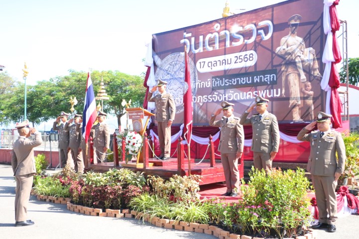 วันที่ 17 ตุลาคม 2568 เวลา 08.00 น. ผู้ช่วยศาสตราจารย์ ดร.ถนอม ทาทอง รองอธิการบดีฝ่ายแผนและงบประมาณ มหาวิทยาลัยนครพนม เข้าร่วม พิธีกล่าวคำสัตย์ปฏิญาณตนของข้าราชการตำรวจ เนื่องใน “วันตำรวจ” ประจำปี 2568 พร้อมด้วยหัวหน้าส่วนราชการจังหวัดนครพนม โดยมี พล.ต.ต. ศักดิ์ชาย สาดมะเริง ผู้บังคับการตำรวจภูธรจังหวัดนครพนม เป็นประธานในพิธี ณ ตำรวจภูธรจังหวัดนครพนม อำเภอเมือง จังหวัดนครพนม