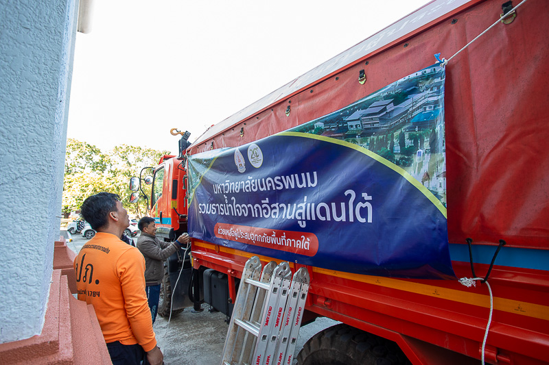 มหาวิทยาลัยนครพนม รวมธารน้ำใจจากอีสานสู่แดนใต้ ส่งมอบสิ่งของช่วยเหลือผู้ประสบอุทกภัยภาคใต้