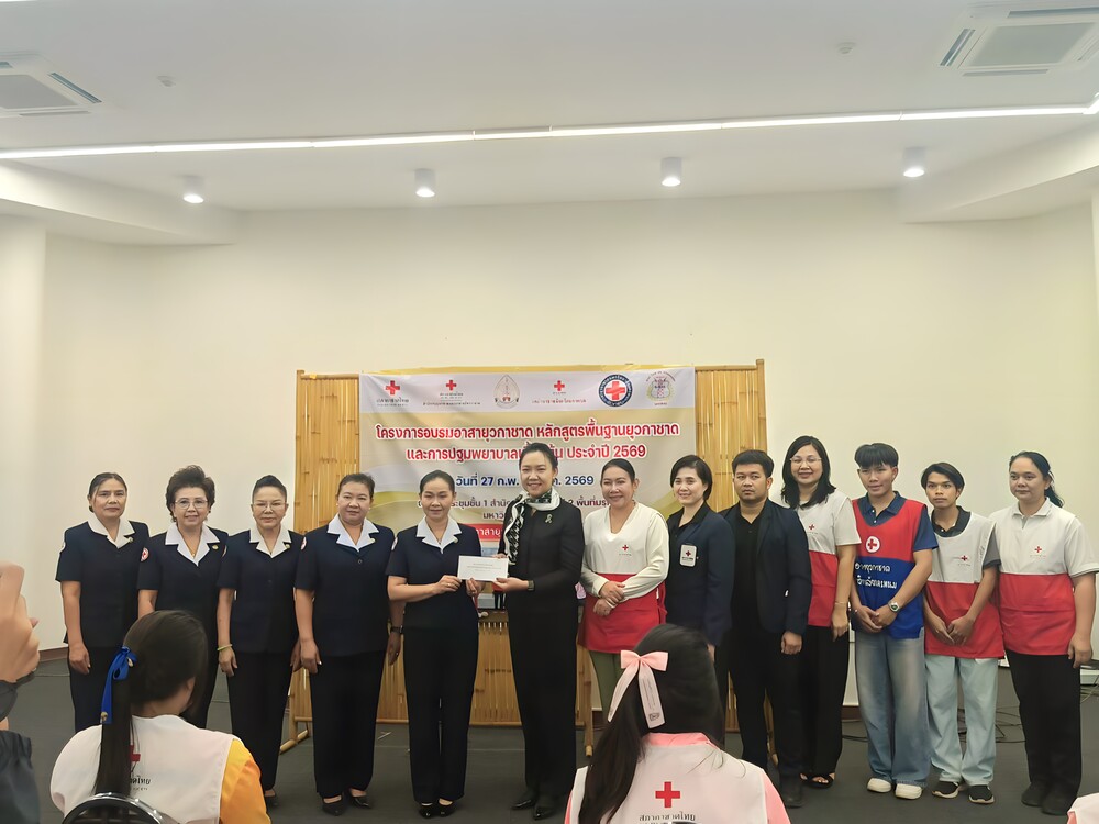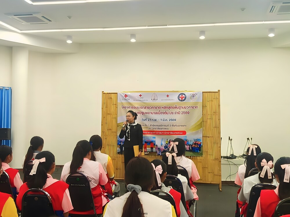 วันที่ 28 กุมภาพันธ์ 2569 เวลา 09.00 น. ผู้ช่วยศาสตราจารย์ ดร.รุ้งลาวัลย์ เอี่ยมกุศลกิจ รองอธิการบดีฝ่ายกิจการพิเศษและประกันคุณภาพการศึกษา มหาวิทยาลัยนครพนม เป็นประธานในพิธีเปิดโครงการอบรมอาสายุวกาชาด เรื่อง หลักสูตรพื้นฐานยุวกาชาด ประจำปี 2569 และโครงการอบรมอาสายุวกาชาด เรื่อง การปฐมพยาบาลเบื้องต้น พร้อมด้วย ดร.พรหมภัสสร ชุณหบุญญทิพย์ ผู้ช่วยอธิการบดีฝ่ายกิจการนักศึกษาและศิลปวัฒนธรรม รวมถึงบุคลากรกองพัฒนานักศึกษา สำนักงานอธิการบดี เข้าร่วมพิธี ณ ห้องประชุมชั้น 3 อาคารสำนักงานอธิการบดี 2 มหาวิทยาลัยนครพนม เขตพื้นที่มรุกขนคร