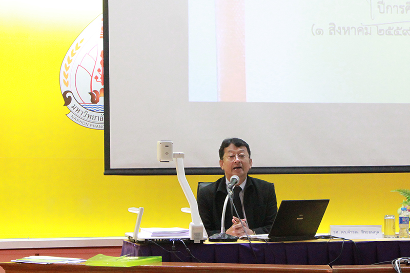 เมื่อวันที่ 15 มิถุนายน 2560 เวลา 09.00 น. ณ ห้องราชพฤกษ์ ชั้น 5 อาคารสารสนเทศเพื่อการบริหาร มหาวิทยาลัยนครพนม งานประกันคุณภาพการศึกษา มหาวิทยาลัยนครพนม ได้จัดโครงการพัฒนาผู้รับผิดชอบหลักสูตร : เทคนิคการเขียน มคอ.7 โดยมี รองศาสตราจารย์ ดร.คำรณ สิระธนกุล คณบดีคณะเทคโนโลยีอุตสาหกรรม รักษาราชการแทนรองอธิการบดี มหาวิทยาลัยนครพนม เป็นประธานในพิธีเปิดโครงการฯ และได้รับเกียรติจาก ศาสตราจารย์นายแพทย์วุฒิชัย ธนาพงศธร เป็นวิทยากรบรรยายให้ความรู้ในครั้งนี้