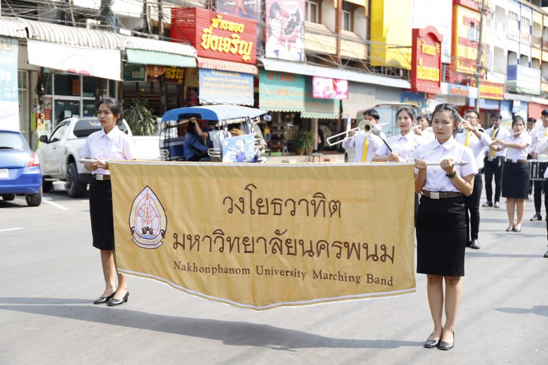 การแข่งขันกีฬานักศึกษา "มหาวิทยาลัยนครพนมเกมส์ ครั้งที่ 13" เริ่มต้นเปิดฉากความสนุกสนาน เสริมสร้างความรักความสามัคคี กลมเกลียวของนักศึกษาต่างคณะ/วิทยาลัย ด้วยสีสันขบวนพาเหรดสุดอลังการ จากนักศึกษาทั้ง 14 คณะ/วิทยาลัย โดยเริ่มเดินขบวนจากบริเวณแลนมาร์คพญาศรีสัตนาคราช เข้าสู่สนามกีฬากลางจังหวัดนครพนม ในรูปแบบขบวนศิลปวัฒนธรรมอีสาน