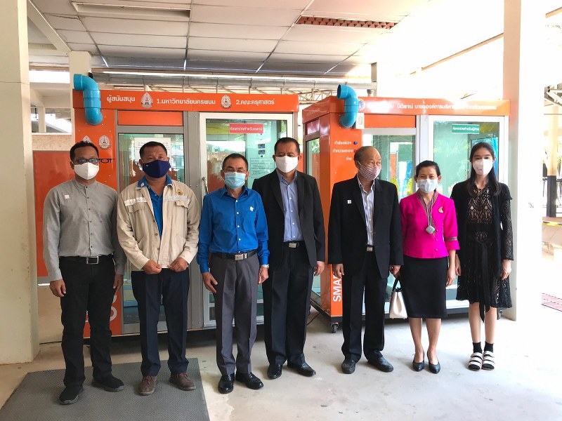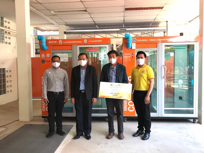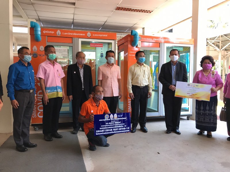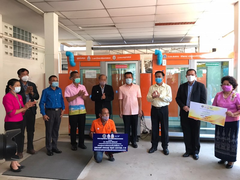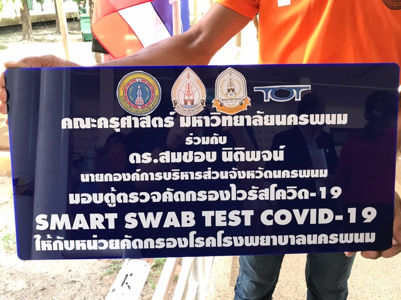 วันที่ 12 พฤษภาคม 2563 เวลา 10.00 น. ผู้ช่วยศาสตราจารย์ว่าที่ ร.อ.ดร.ชาญวิทย์ หาญรินทร์ คณบดีคณะครุศาสตร์ มหาวิทยาลัยนครพนม พร้อมด้วยคณะผู้บริหารคณะครุศาสตร์ มหาวิทยาลัยนครพนม และ ดร.สมชอบ นิติพจน์ นายกองค์การบริหารส่วนจังหวัดนครพนม มอบตู้ตรวจคัดกรองเชื้อไวรัสโคโรนา 2019 (Smart Swab Test Covid 19) จำนวน 2 ชุด ให้กับโรงพยาบาลนครพนม เพื่อลดความเสี่ยงในการรับเชื้อไวรัสโคโรนา 2019 จากผู้มีความเสี่ยงสู่บุคลากรทางการแพทย์ โดยมีนายแพทย์ยุทธชัย ตริสกุล ผู้อำนวยการโรงพยาบาลนครพนม พร้อมแพทย์ พยาบาล เจ้าหน้าที่ รวมถึงนายชาตรี จันทร์วีระชัย รองผู้ว่าราชการจังหวัดนครพนม เป็นสักขีพยานในการรับมอบ