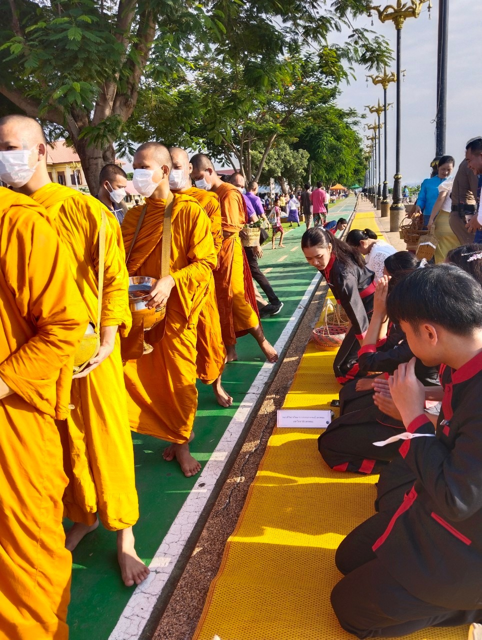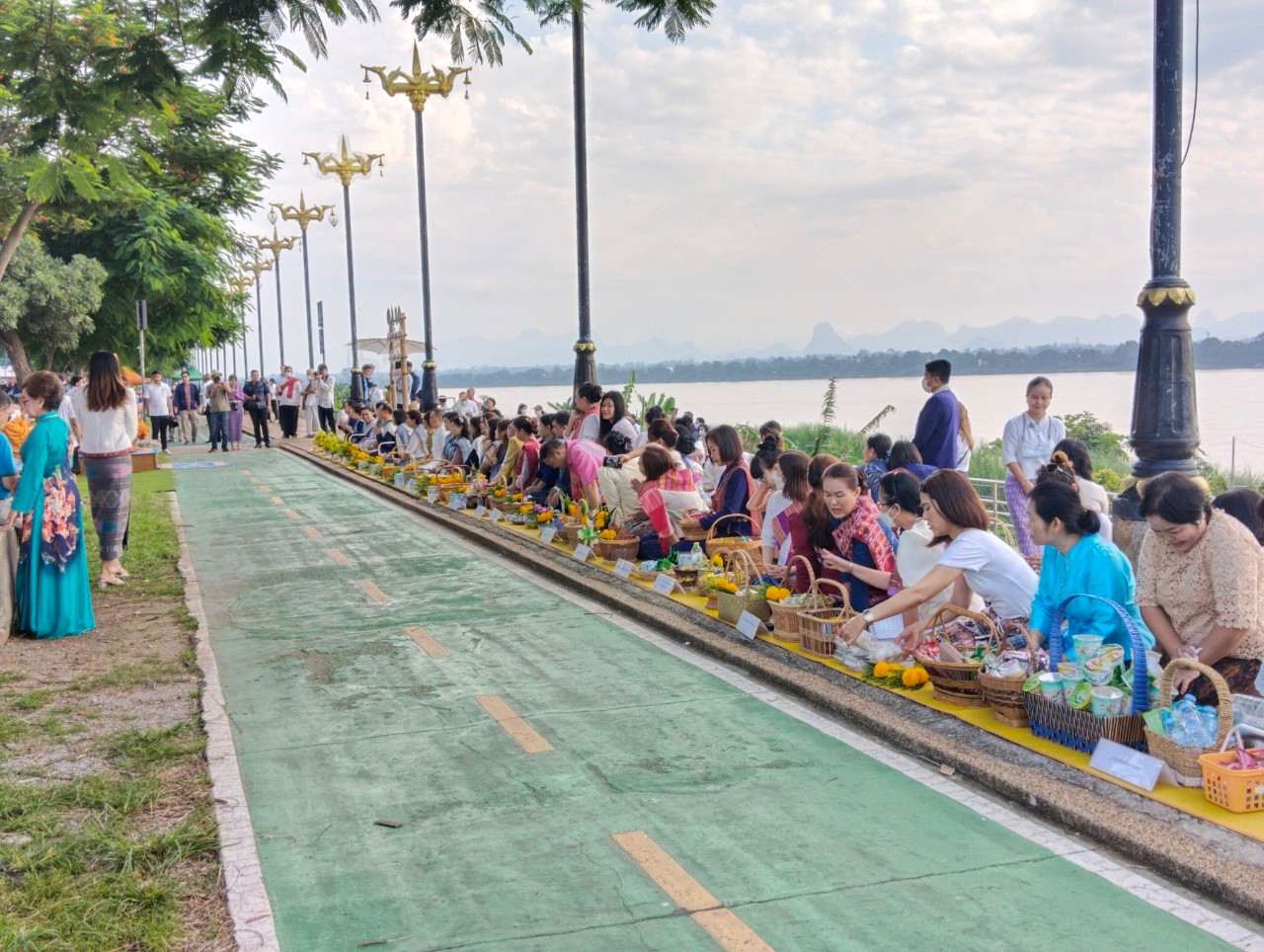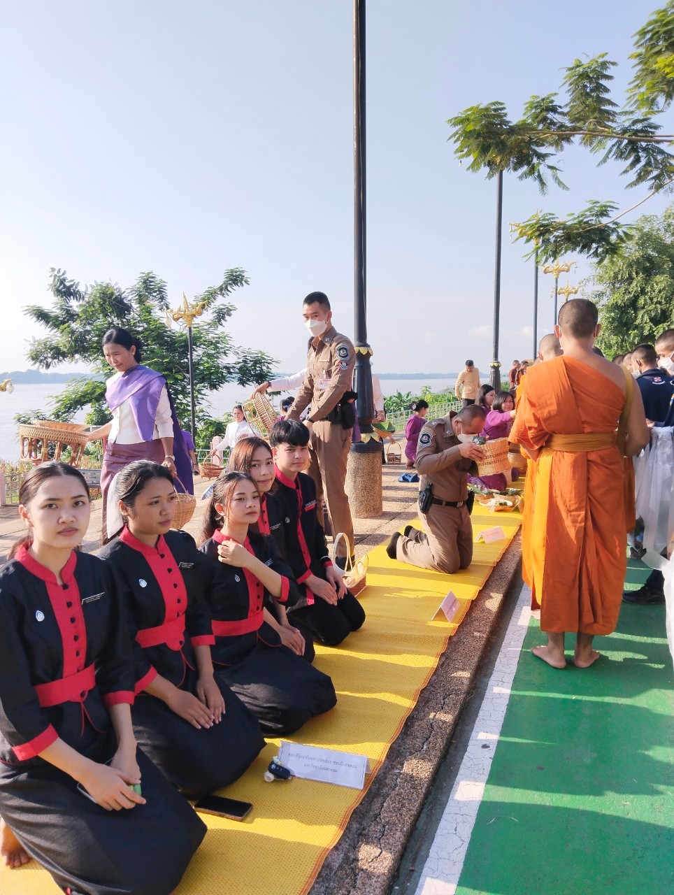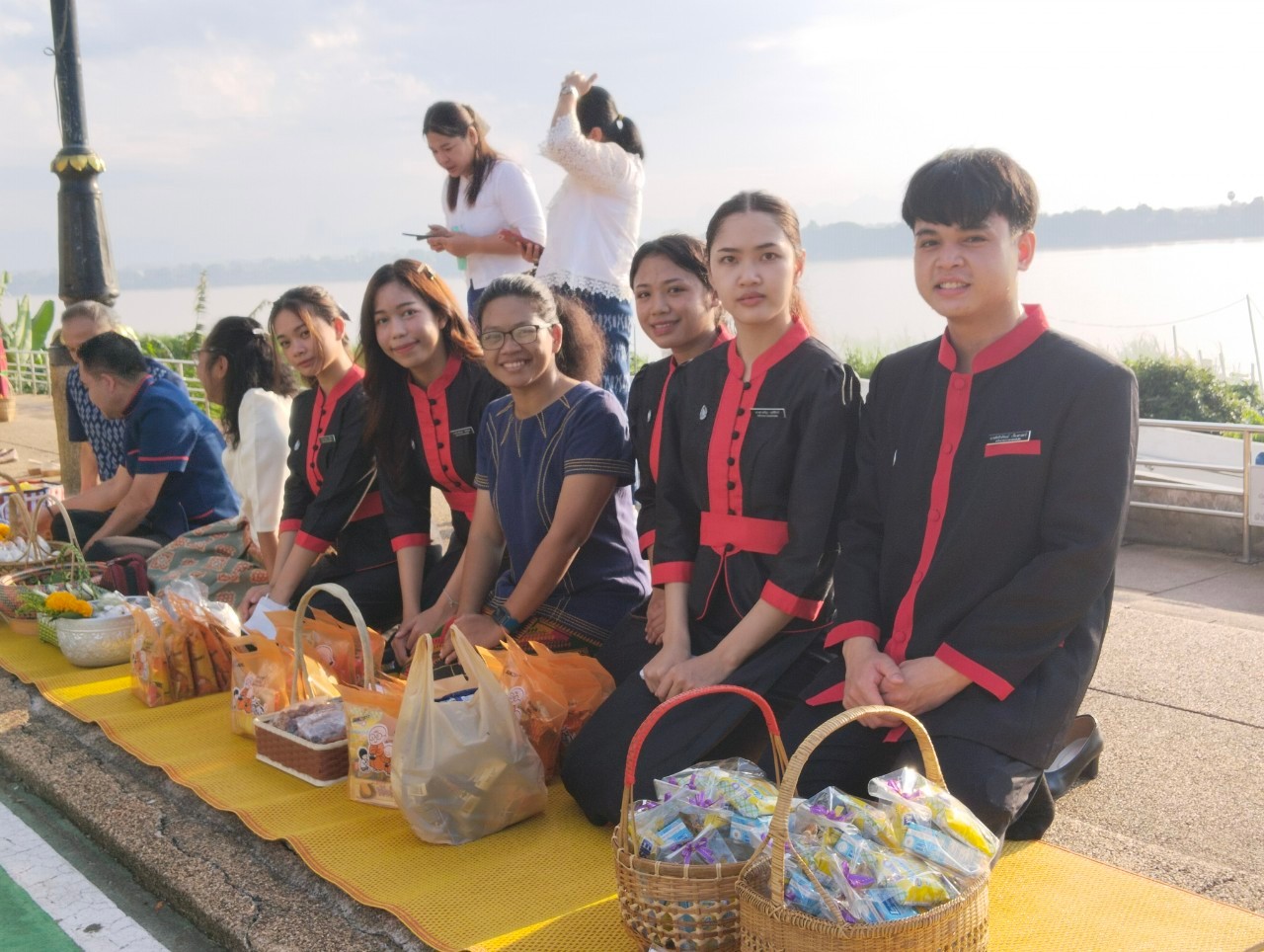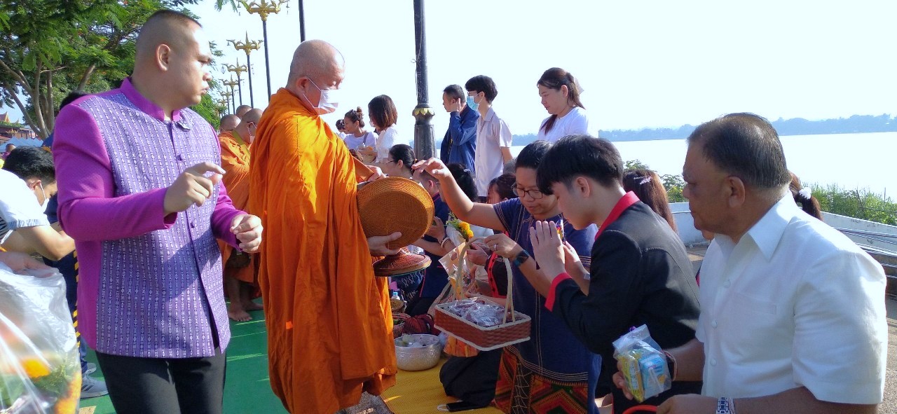 #วิทยาลัยพยาบาลบรมราชชนนีนครพนม #มหาวิทยาลัยนครพนม #กิจกรรมครอบครัวหิ้วตะกร้า #ศรัทธาอิ่มบุญ #อุดหนุนชุมชน #สวมผ้าไทยห่มสไบ #ใส่บาตรริมโขง