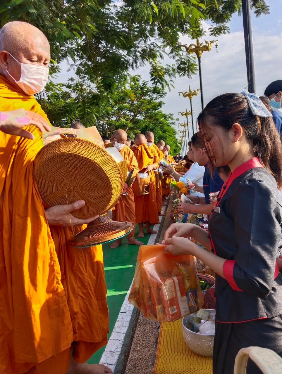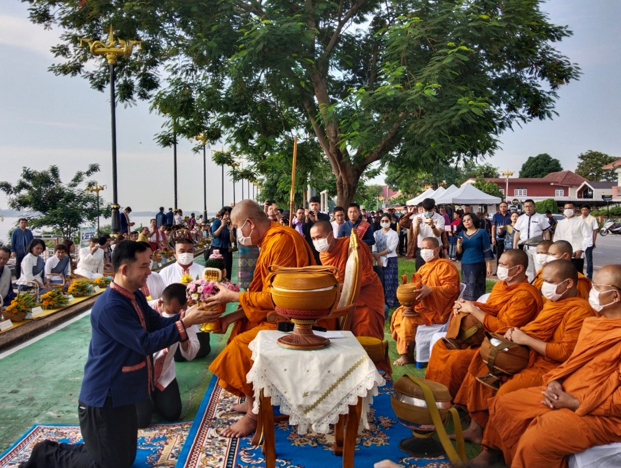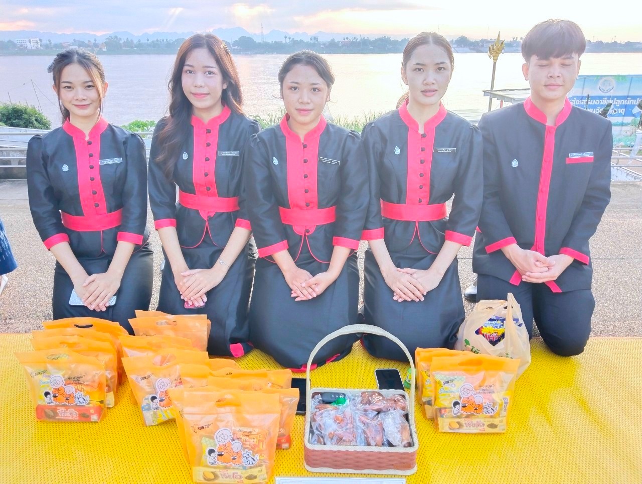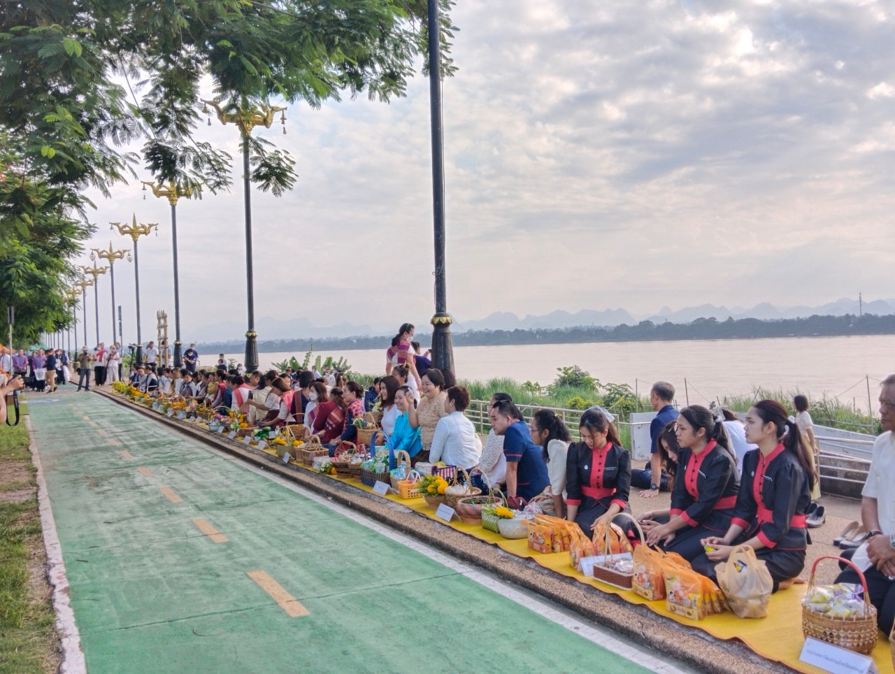 #วิทยาลัยพยาบาลบรมราชชนนีนครพนม #มหาวิทยาลัยนครพนม #กิจกรรมครอบครัวหิ้วตะกร้า #ศรัทธาอิ่มบุญ #อุดหนุนชุมชน #สวมผ้าไทยห่มสไบ #ใส่บาตรริมโขง