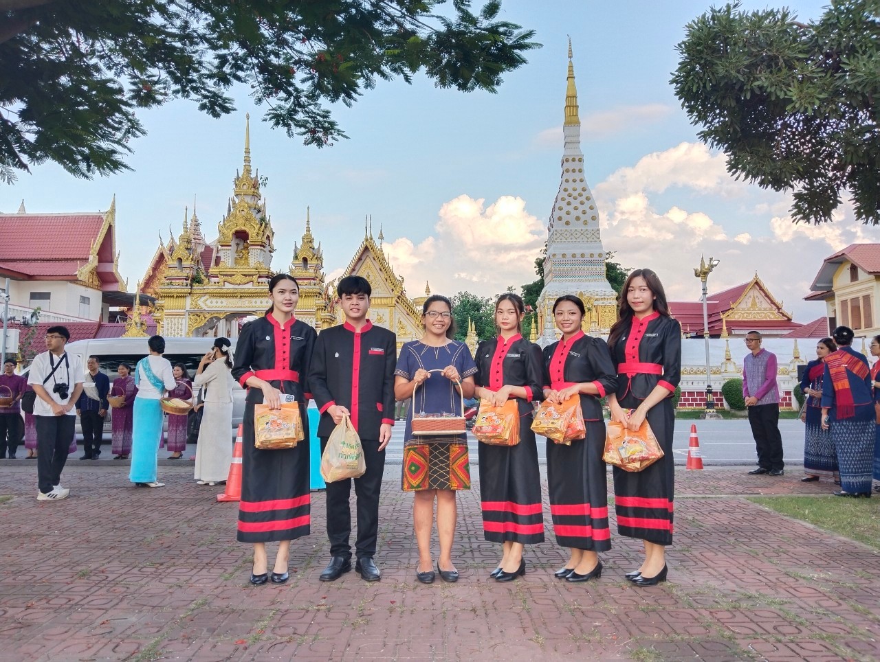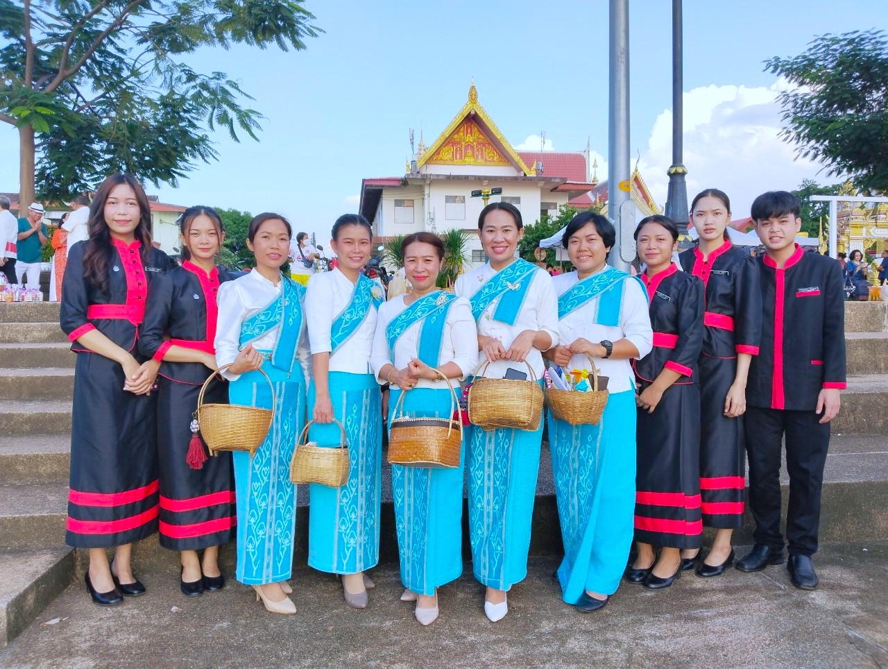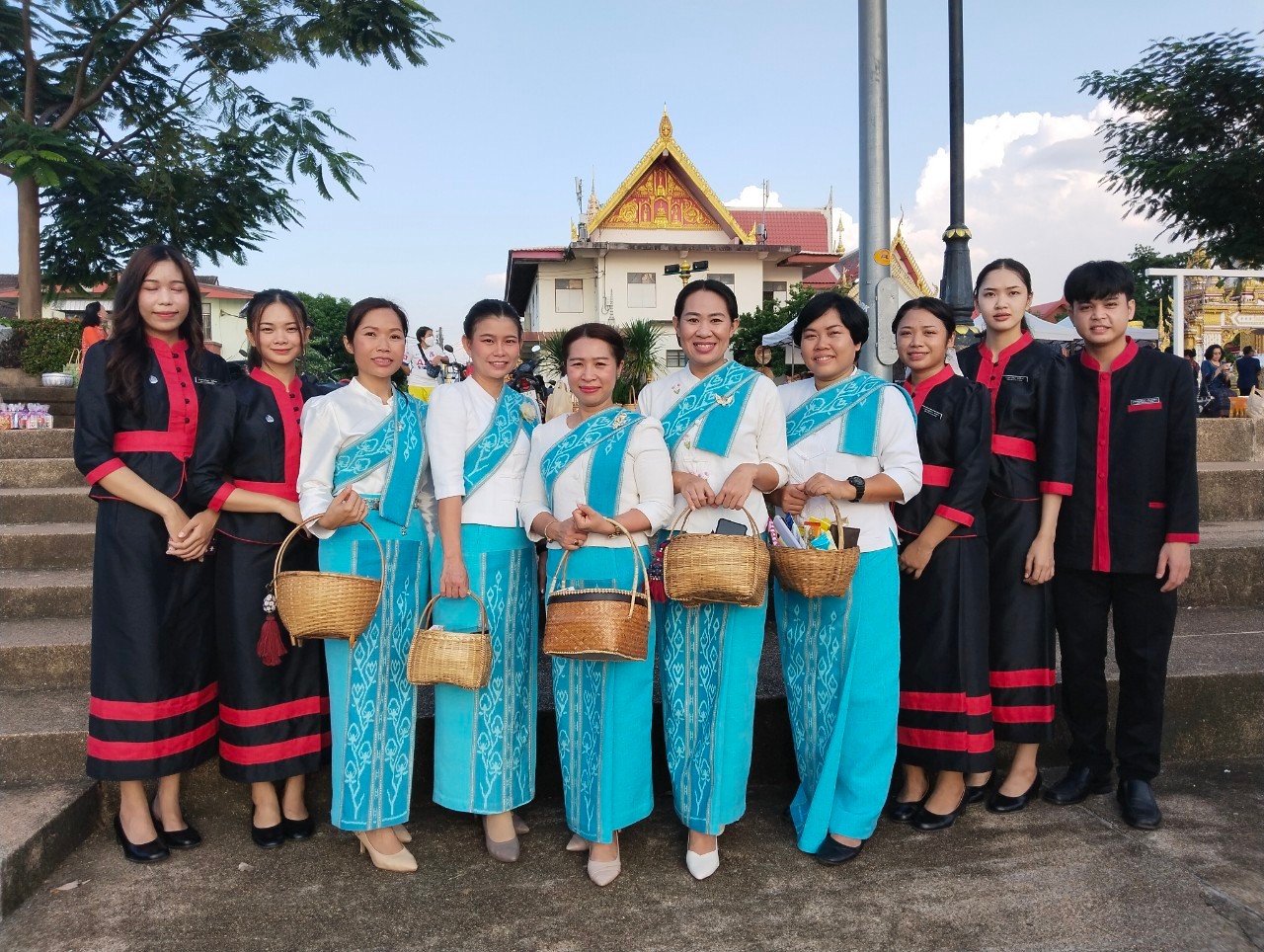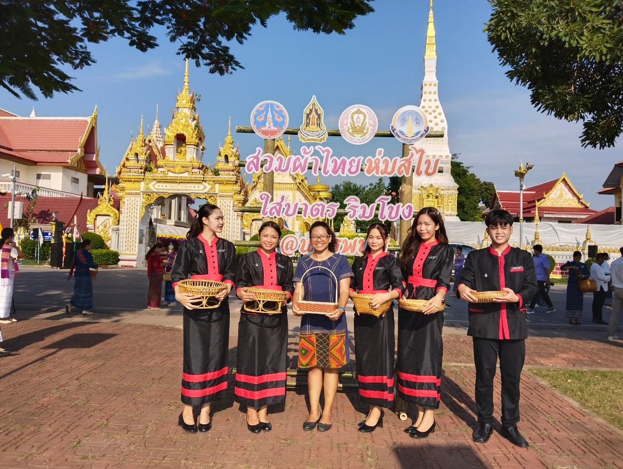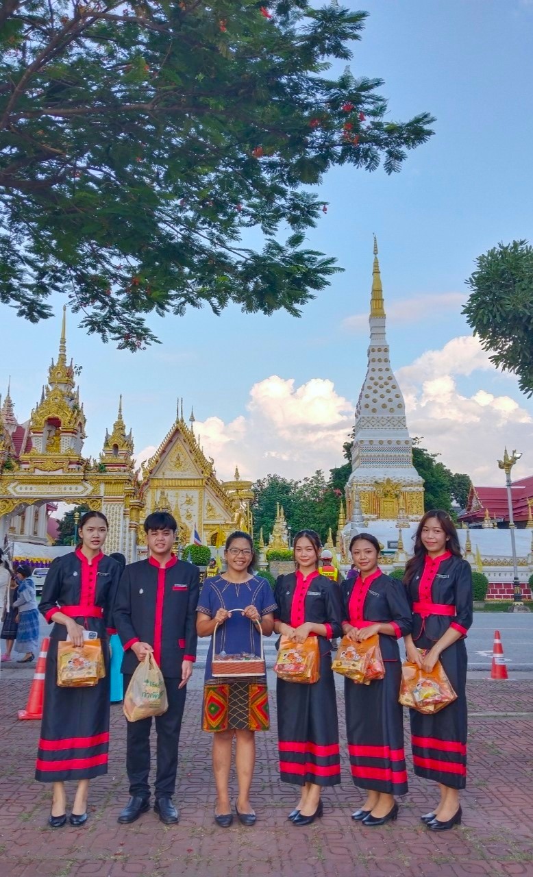 วพบ.นครพนม ร่วมกิจกรรมครอบครัวหิ้วตะกร้า ศรัทธาอิ่มบุญ อุดหนุนชุมชน ภายใต้แนวคิด "สวมผ้าไทย ห่มสไบ ใส่บาตรริมโขง"