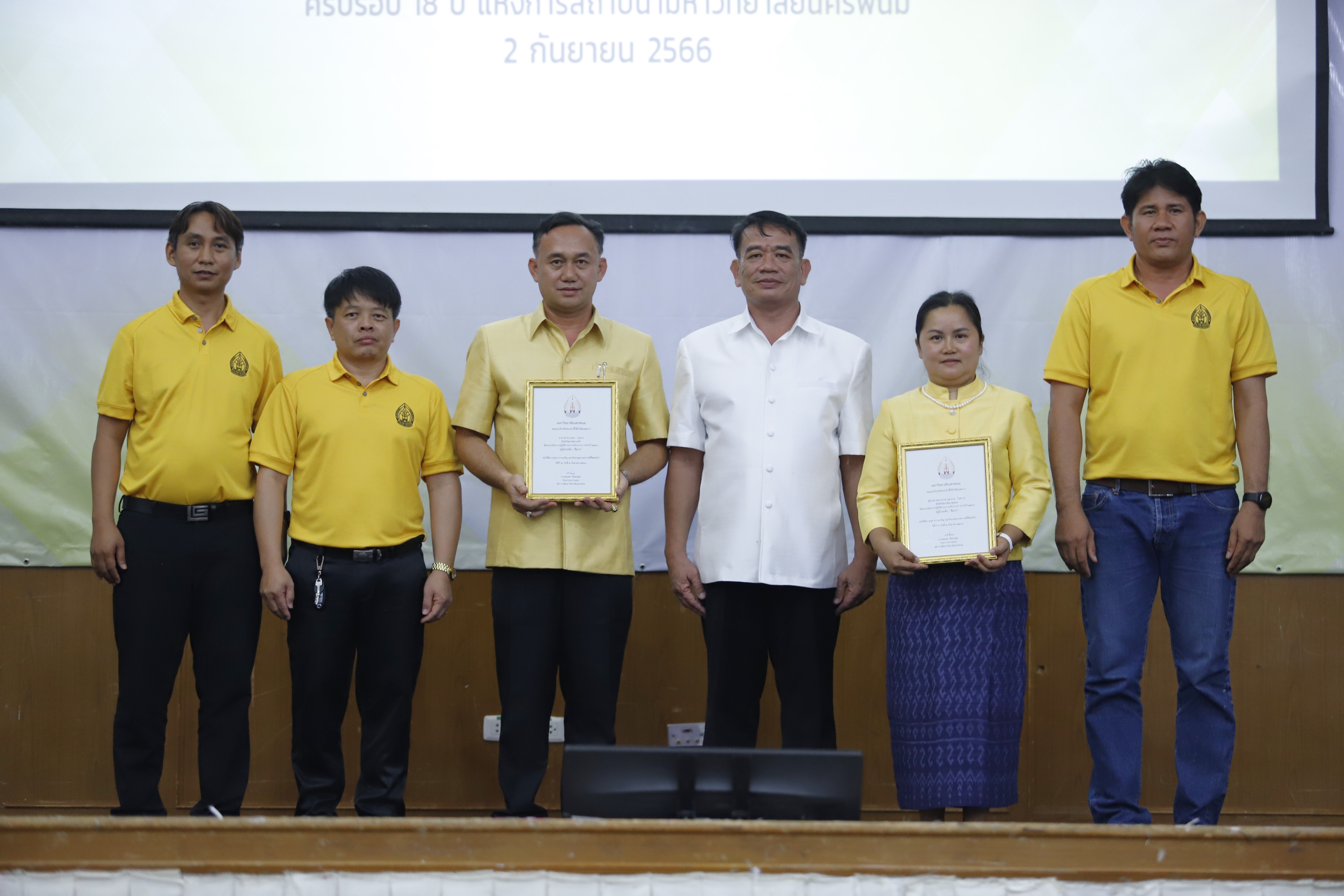ม.นครพนม จัดพิธีแสดงมุทิตาจิตผู้เกษียณอายุราชการ และมอบเกียรติบัตรบุคลากรดีเด่น เนื่องในวันครบรอบ 18 ปี แห่งการสถาปนามหาวิทยาลัย