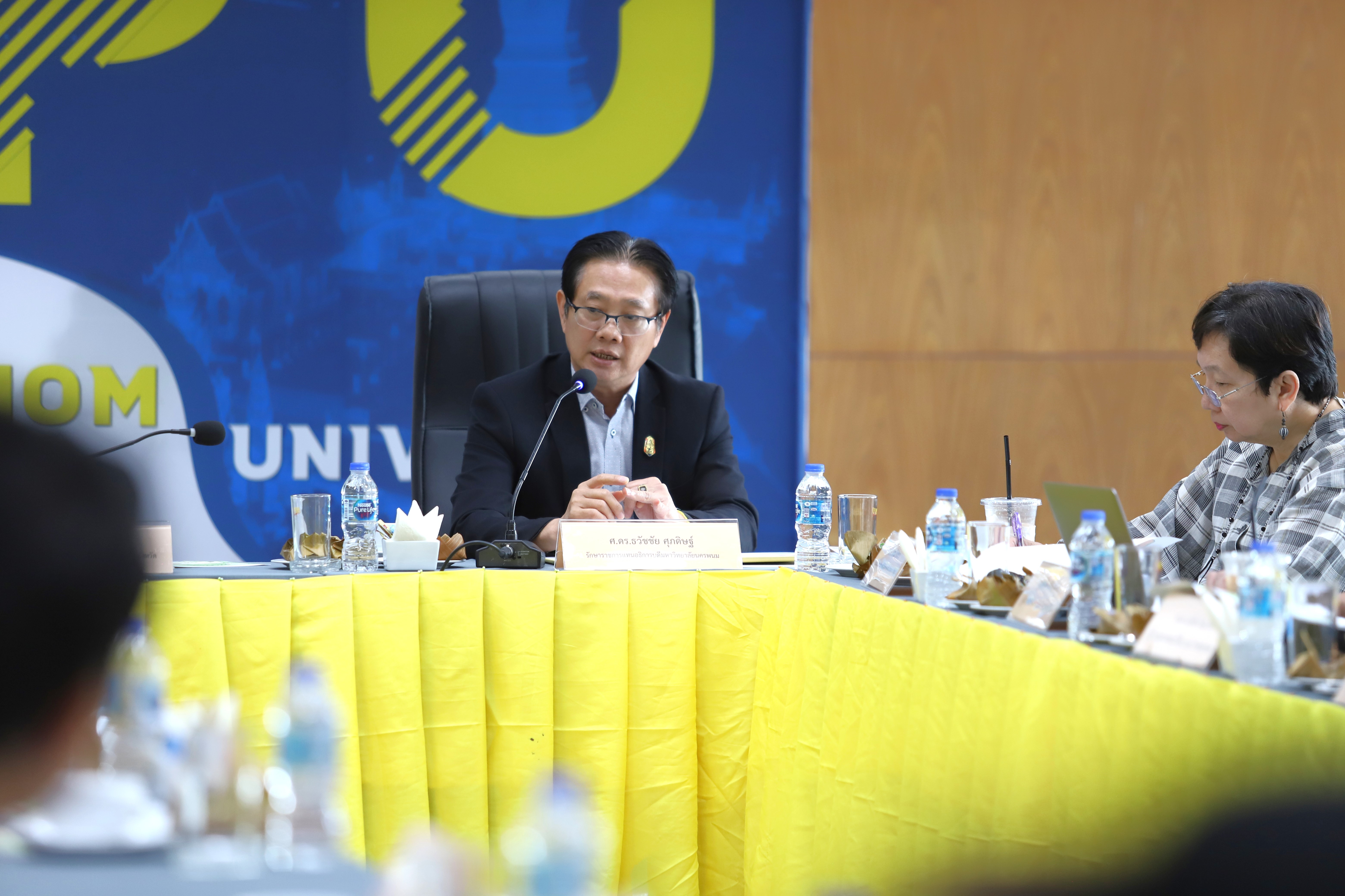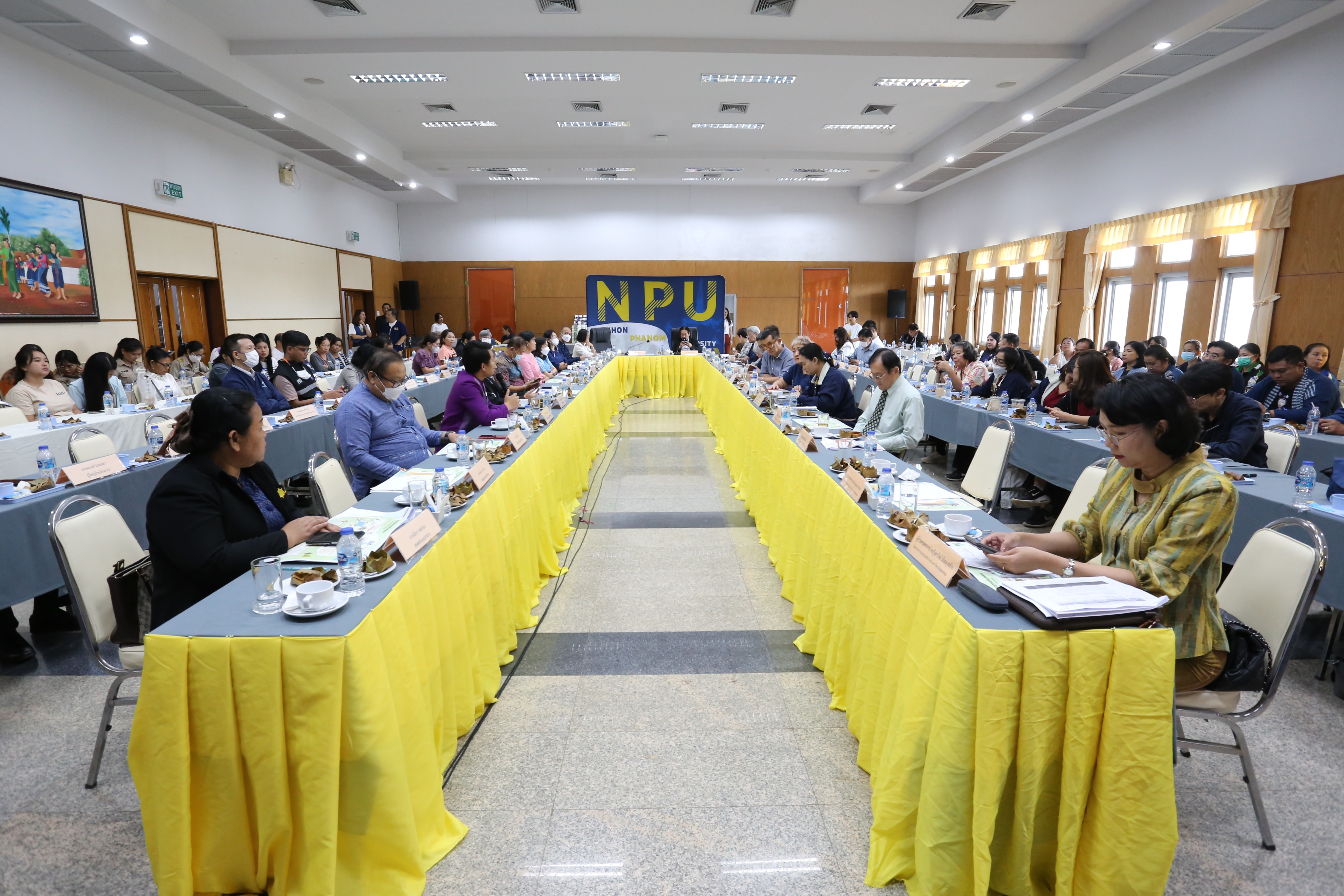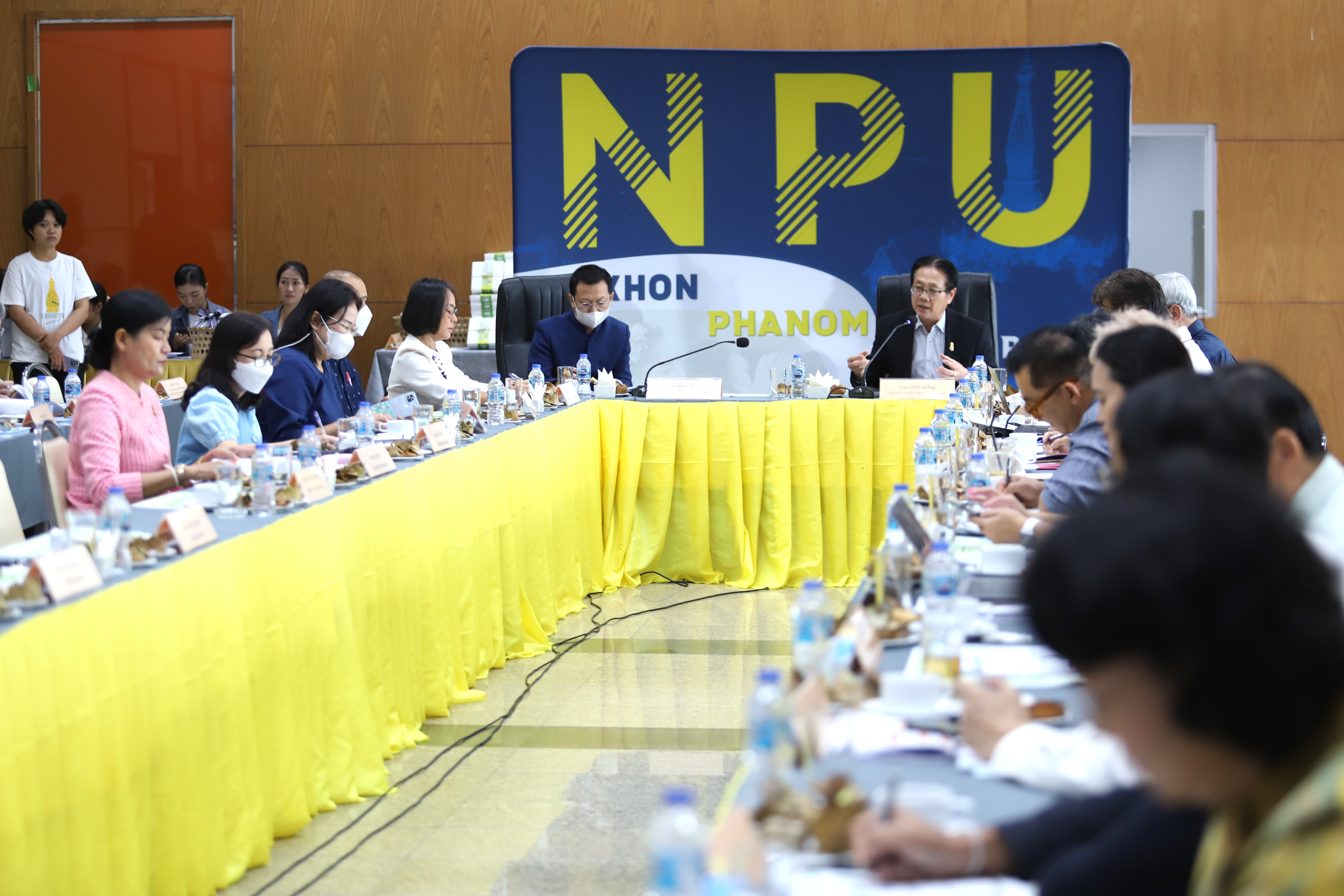 วันที่ 28 กันยายน 2566 มหาวิทยาลัยนครพนม จัดประชุม “การนำเสนอผลการวิจัย เพื่อขยายผลไปสู่การปฏิบัติเชิงพื้นที่ โครงการการพัฒนาศักยภาพผู้ประกอบการตลอดสายโซ่ผลิตภัณฑ์กะละแมโบราณนครพนม ด้วยกลไกขับเคลื่อนห่วงโซ่คุณค่าใหม่บนฐานทุนทรัพยากรพื้นถิ่น” โดยมีศาสตราจารย์ ดร.ธวัชชัย ศุภดิษฐ์ รักษาราชการแทนอธิการบดีมหาวิทยาลัยนครพนม เป็นประธานพิธี และได้รับเกียรติจากนายณัฐพล สุริยนต์ ผู้อำนวยการกลุ่มงานยุทธศาสตร์และข้อมูลเพื่อการพัฒนาจังหวัดนครพนม พร้อมด้วยคณะผู้เชี่ยวชาญกรอบการวิจัย Local Enterprises นำทีมโดย รศ.ดร.บัณฑิต อินณวงศ์ ผู้อำนวยการกรอบการวิจัย Local Enterprises และคณะเข้าร่วมรับฟังพร้อมให้ข้อเสนอแนะการทำงานวิจัยในครั้งนี้ ณ ห้องพนมนาคา ชั้น 5 อาคารสารสนเทศเพื่อการบริหาร สำนักงานอธิการบดี มหาวิทยาลัยนครพนม