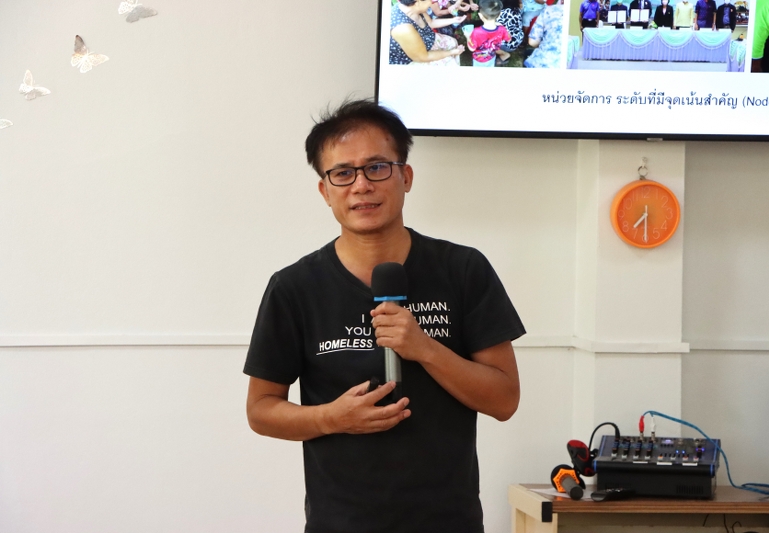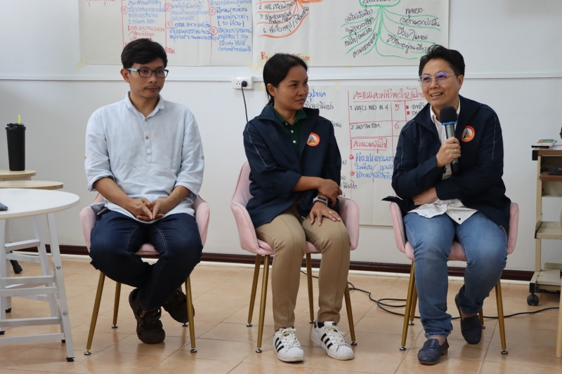จากนั้นเปิดเวที “เรื่องเล่าจากสนาม” โดยการนำพี่เลี้ยง หรือบุคคลที่ทำงานร่วมกันมาตั้งแต่เฟสที่ 1 ร่วมพูดคุยแลกเปลี่ยนมุมมองการทำงาน ปัญหา และอุปสรรค์ระหว่างการทำงานที่ผ่านมา แก่คณะทำงานหน่วยฯ (พี่เลี้ยง) จากผู้ช่วยศาสตราจารย์ ชัยวัฒน์ อินไชยา, อาจารย์จุฑาลักษณ์ แสนโท, นางปิยะดา ฟองแก้ว และนางสาวภาณุวรรณ ศรีชัย