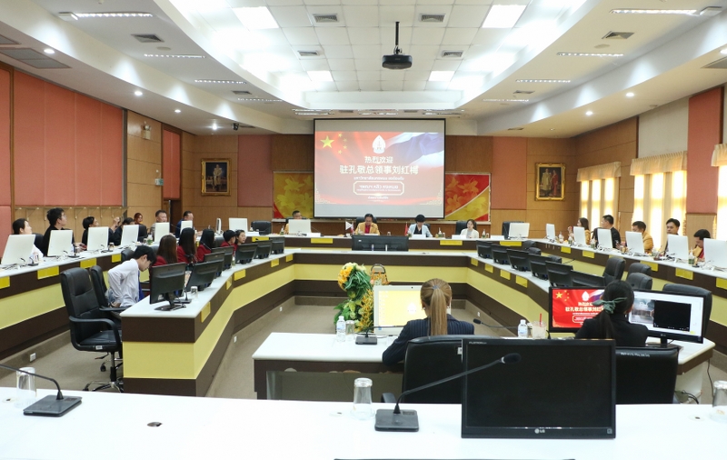 ด้าน Mrs. Liu Hongmei กงสุลใหญ่สาธารณรัฐประชาชนจีน ณ จังหวัดขอนแก่น กล่าวว่า รู้สึกประทับใจการต้อนรับของคณะผู้บริหาร ดีใจที่ได้เจอกับผู้บริหารมหาวิทยาลัยนครพนม ซึ่งทำให้เราได้รู้จักภาพรวมของมหาวิทยาลัยและความร่วมมือต่าง ๆ ของมหาวิทยาลัยนครพนมกับมหาวิทยาลัยในจีน รู้สึกดีใจและยินดีแทนมหาวิทยาลัยนครพนม ที่มีนักศึกษาชาวจีนมาเรียนที่นี่ หวังว่าในอนาคตจะมีนักศึกษาจากไทยไปเรียนที่จีนเพิ่มมากขึ้น ซึ่งจะทำให้เกิดการแลกเปลี่ยนวัฒนธรรมซึ่งกันและกันของกลุ่มนักศึกษารุ่นใหม่