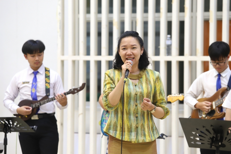 ทั้งนี้ ผู้ช่วยศาสตราจารย์ ดร.รุ้งลาวัลย์ เอี่ยมกุศลกิจ ยังได้ร่วมขับร้องบทเพลงกับนางสาวศิริรัตน์ บุญศรี และนางสาวณัฐณิชา บานถิ ซึ่งเป็นนักศึกษานักร้องนำของวงในทีมด้วย