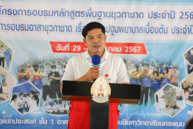 วันที่ 29 มีนาคม 2567 เวลา 09.00 น. ชมรมอาสายุวกาชาด มหาวิทยาลัยนครพนม (RCY NPU) จัดกิจกรรมโครงการ "อบรมหลักสูตรพื้นฐานยุวกาชาดและการปฐมพยาบาลเบื้องต้น ประจำปี 2567" เพื่อให้สมาชิก เยาวชน ได้เรียนรู้การเป็นอาสายุวกาชาด วิธีการปฐมพยาบาลเบื้องต้น และการช่วยเหลือด้านจิตอาสา โดยมี ผู้ช่วยศาสตราจารย์ ดร.เกรียงไกร ผาสุตะ ผู้ช่วยอธิการบดีฝ่ายกิจการนักศึกษาและศิลปวัฒนธรรม เป็นประธานเปิดงาน ณ ห้องโถง ชั้น 1 สำนักงานอธิการบดี มหาวิทยาลัยนครพนม (เขตพื้นที่มรุกขนคร)
