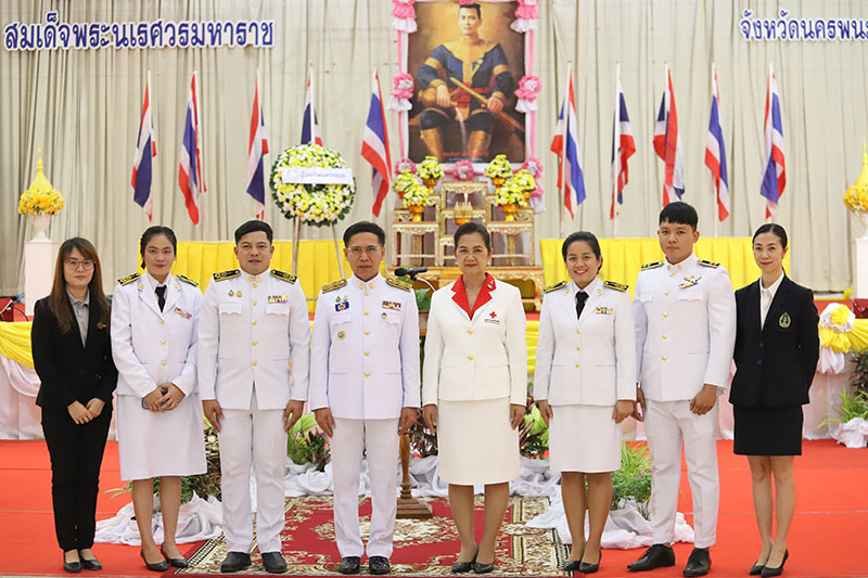 วันที่ 25 เมษายน 2567 เวลา 08.00 น. ผู้ช่วยศาสตราจารย์ ดร.เกรียงไกร ผาสุตะ ผู้ช่วยอธิการบดีฝ่ายกิจการนักศึกษาและศิลปวัฒนธรรม มหาวิทยาลัยนครพนม พร้อมด้วยบุคลากรกองพัฒนานักศึกษาและสถาบันวิจัยและพัฒนา มหาวิทยาลัยนครพนม เข้าร่วมประกอบพิธีวางพวงมาลาถวายราชสักการะสมเด็จพระนเรศวรมหาราช เนื่องในวันคล้ายวันสวรรคตสมเด็จพระนเรศวรมหาราช เพื่อสำนึกในพระมหากรุณาธิคุณ เชิดชูเกียรติคุณพระปรีชาสามารถที่เลื่องลือปรากฏอยู่ในประวัติศาสตร์ไทยจนถึงปัจจุบัน โดยมีนายวันชัย จันทร์พร ผู้ว่าราชการจังหวัดนครพนม เป็นประธานกล่าวถวายราชสดุดี พร้อมด้วยหัวหน้าส่วนราชการ ศาล ทหาร ตำรวจ เหล่ากาชาดจังหวัด และเจ้าหน้าที่ส่วนราชการต่าง ๆ เข้าร่วมประกอบพิธี ณ ศาลาประชาคมยงใจยุทธ บริเวณศาลากลางจังหวัดนครพนม